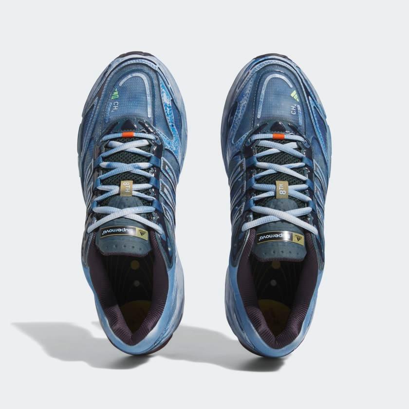 Das erste Paar mit dem Namen COS Supernova in 'Halo Silver' ist von Neptun inspiriert und kommt in einem Blau, die von der teilweise methanhaltigen Atmosphäre des Planeten stammt. CH4, die chemische Formel für Methan, ist auf der Toe Box aufgedruckt, während eine 8 auf der Tongue auf die Position des Neptun im Sonnensystem hinweist.