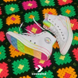 Das gefällt euch? Dann haben wir gute Neuigkeiten, liebe Community. Die Converse Proud to Be 2024 Kollektion und auch das Converse By You Erlebnis sind bereits auf der Converse Website erhältlich! Über den Button könnt ihr euch das gesamte Angebot ansehen.