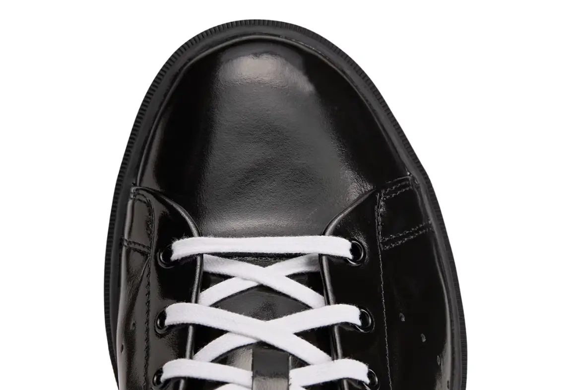 Eine perfekte Übersetzung von SpongeBobs ikonischen Schuhen: glänzend schwarz und funktional, ideal für seine Arbeit in der Küche der Krusty Krab. Hoffen wir nur, dass diese Version ruhig ist.