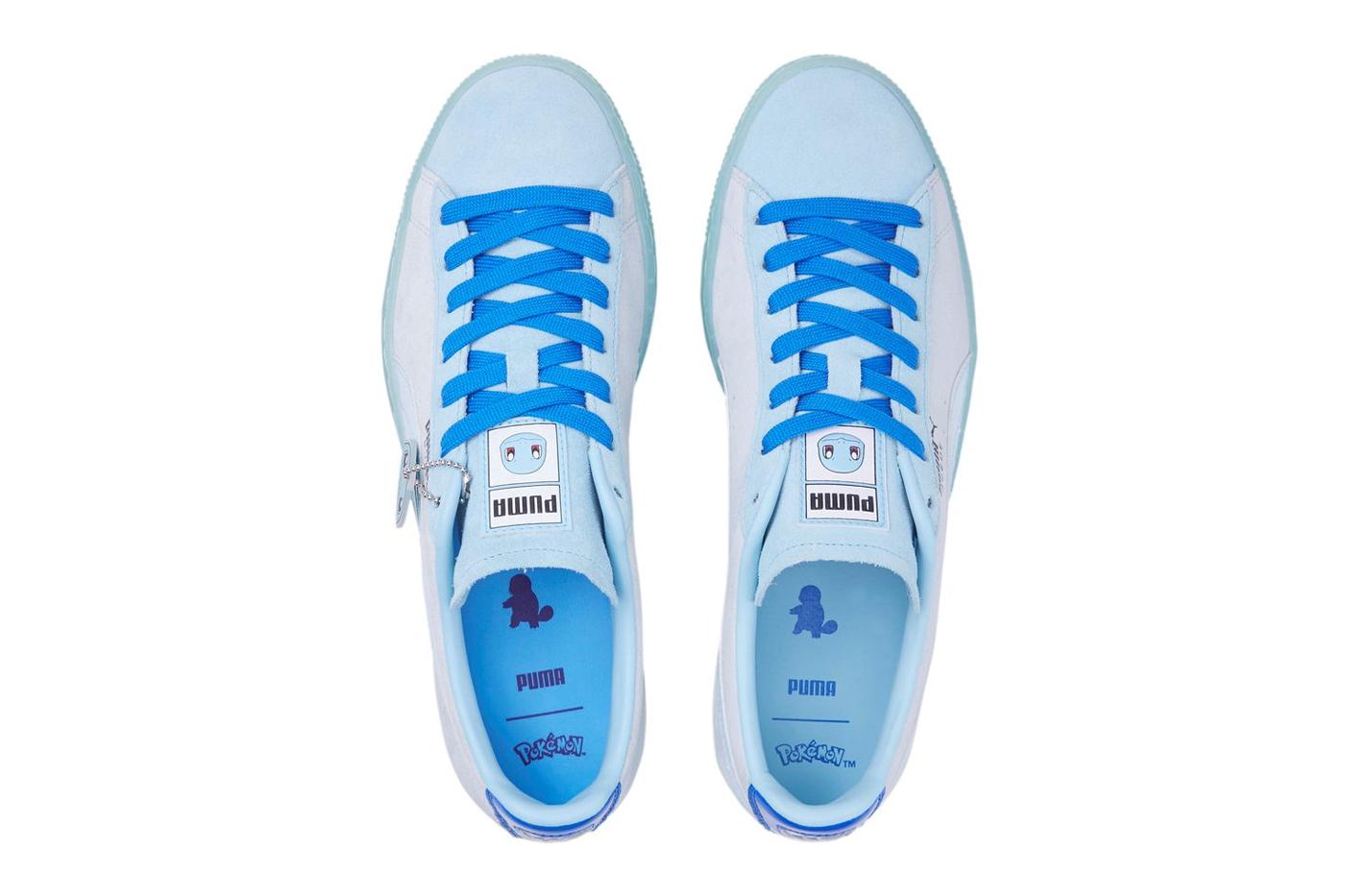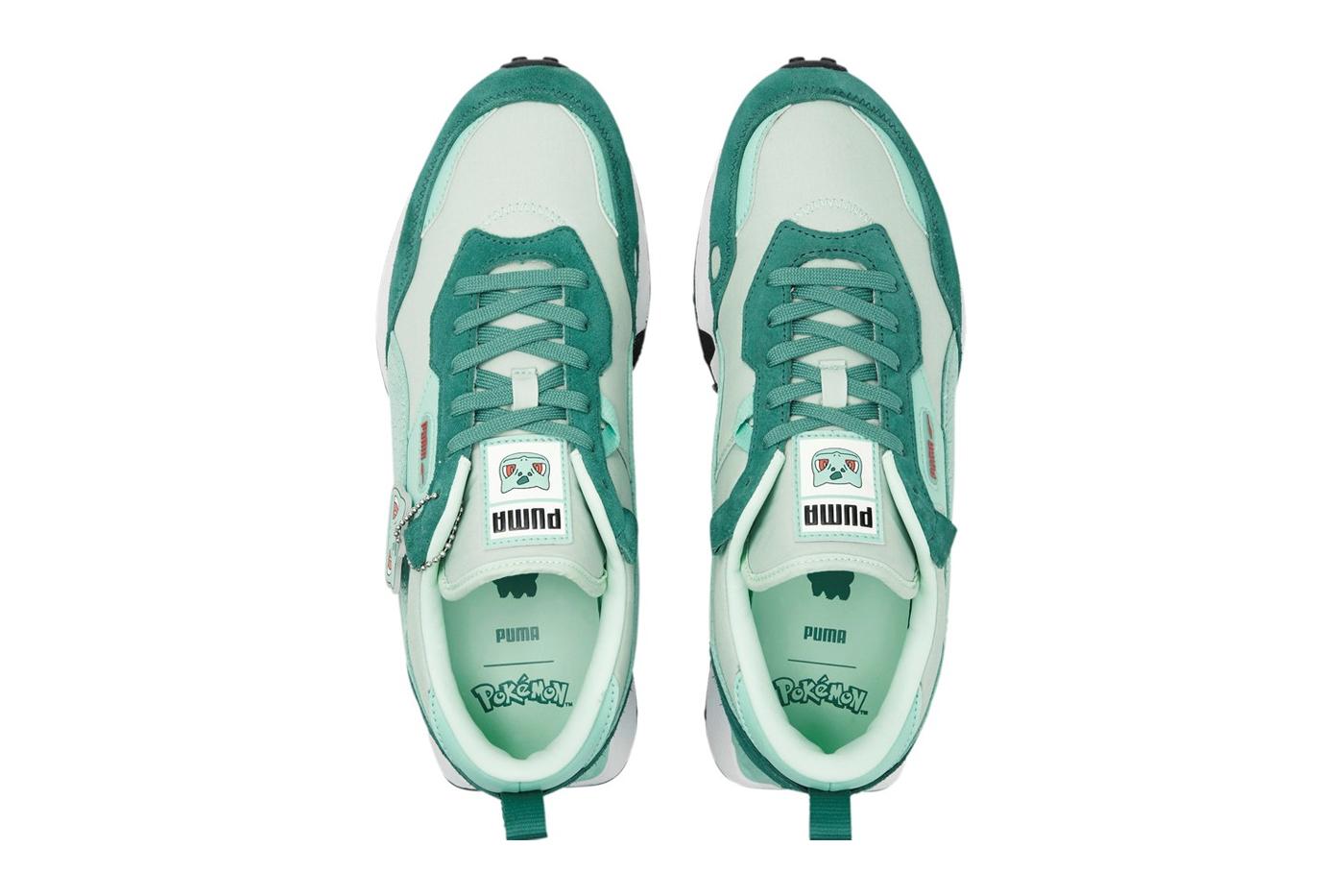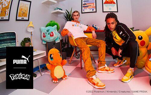 Bulbasaur (Bisasam) und Pikachu erscheinen auf dem PUMA Rider FV. Charmander (Glumanda) hingegen kommt auf dem Basketballschuh Slipstream Lo 1987 und Squirtle (Shiggy) auf einem PUMA Suede. Jede Silhouette nimmt die unterschiedlichen Farben der jeweiligen Pokémons auf, wobei die Grafiken auch auf den Fersenlaschen zu erkennen sind.