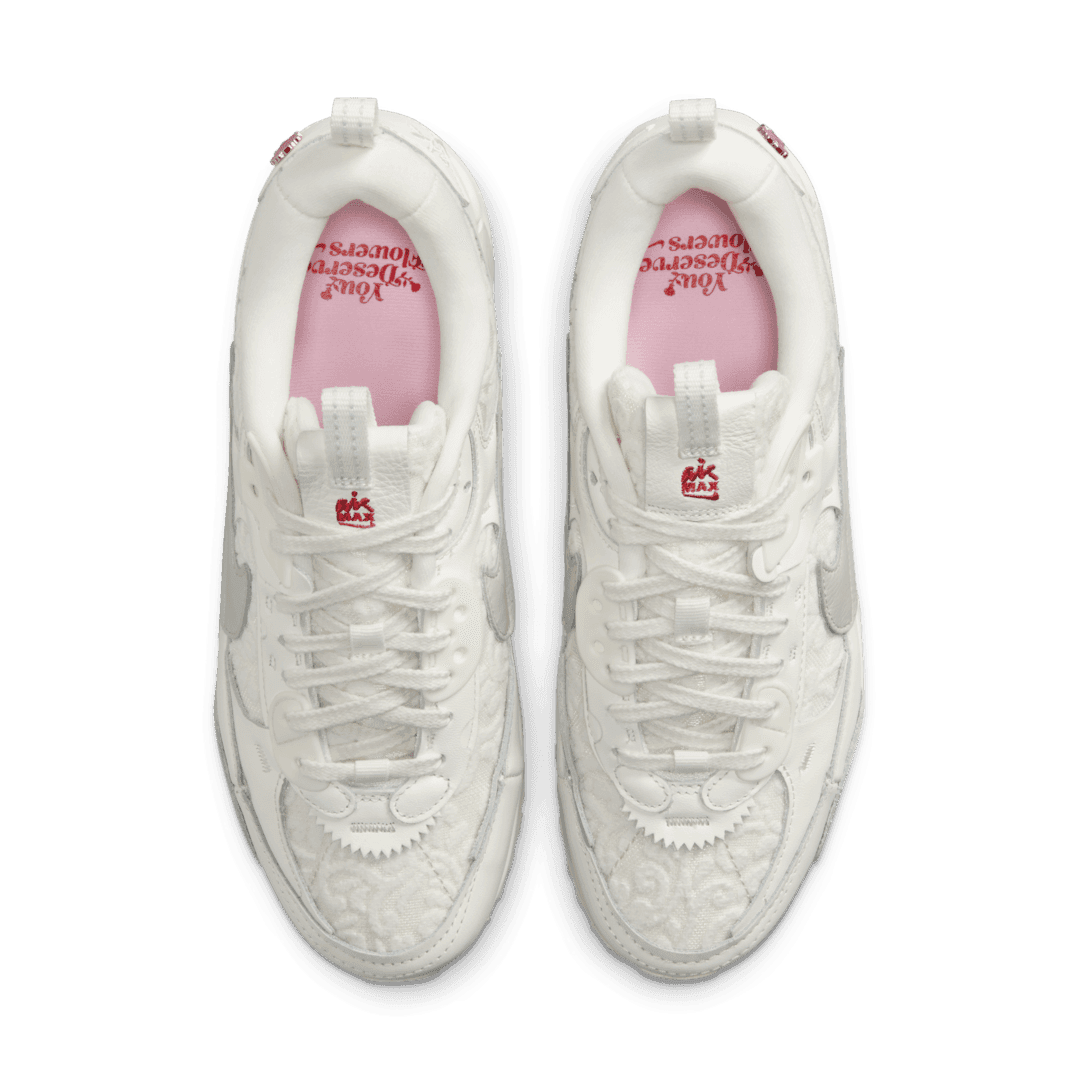 As with the Nike Dunk Low, this Air Max 90 Futura has a similar design with features such as the velvet floral overlay, the metal pin on the heel and the custom-made insoles with the loving message.