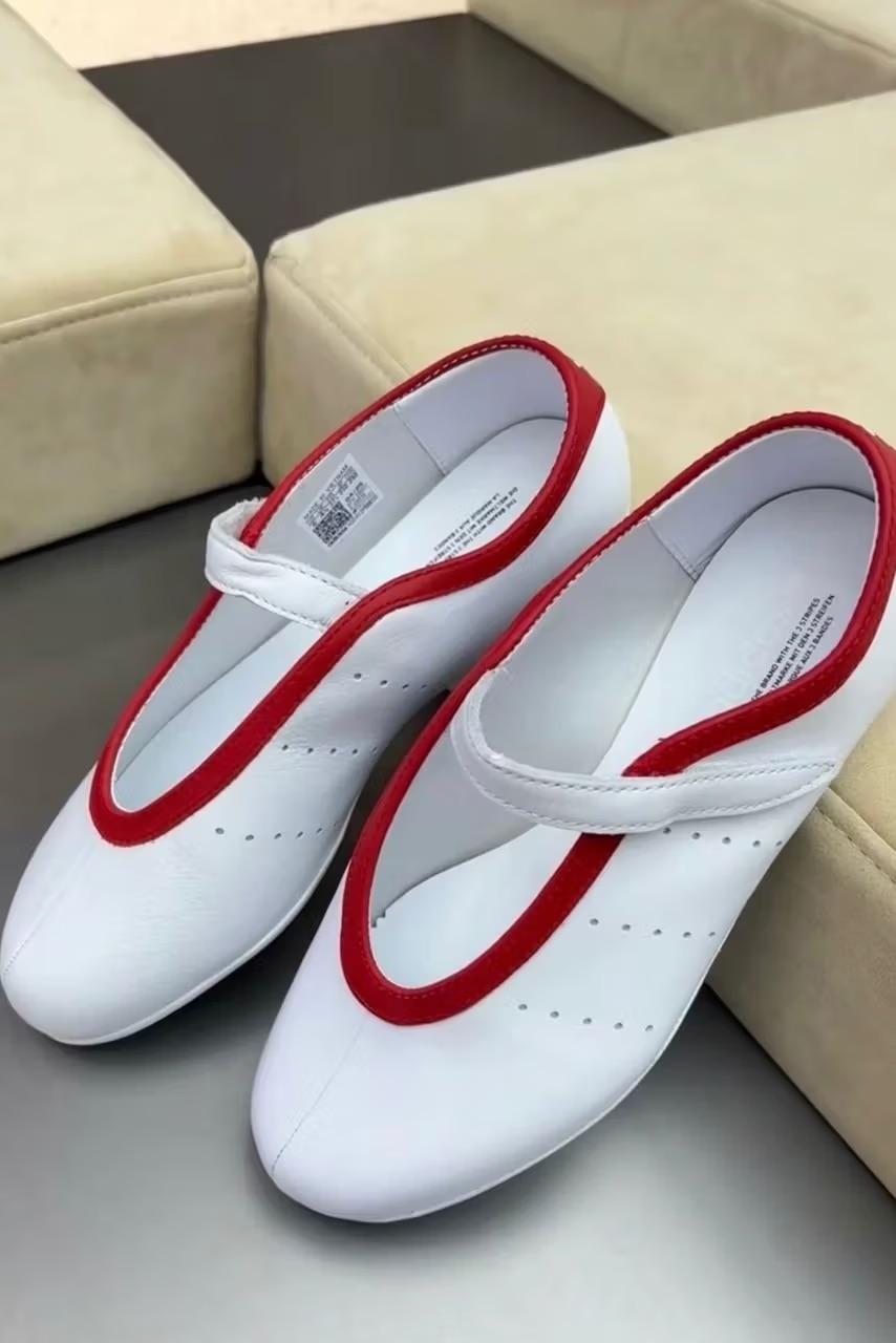 This pair transforms the classic tennis shoe into a lifestyle model inspired by ballet aesthetics. The model features an ultra-flat sole, an elegant seam bisecting the toebox, and a single leather strap instead of laces, evoking Maison Margeila's Tabis luxury.