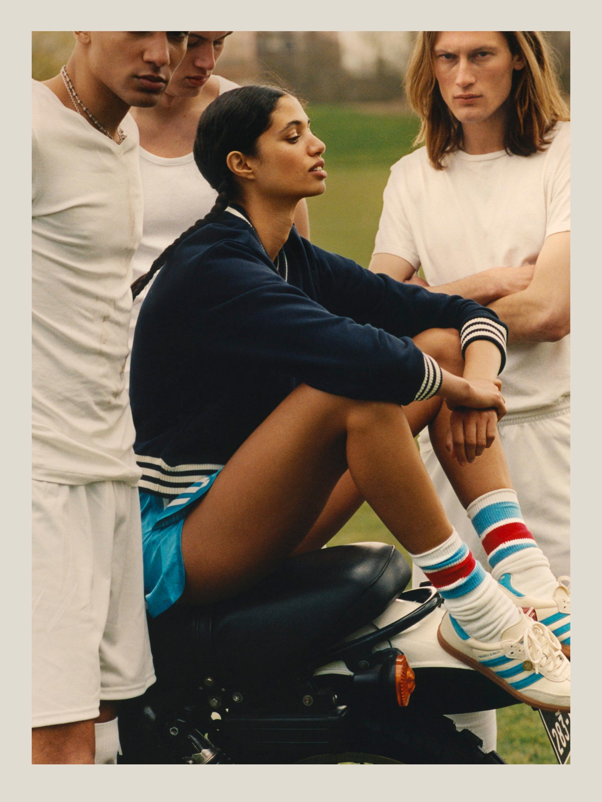 Next to the Samba colorways, adidas and Sporty & Rich bring out a vintage-looking apparel collection. Branded tees in contrasting hues and dual-branded hits, V-neck sweaters, soccer jerseys, and nylon shorts bring a fresh look to classic silhouettes.