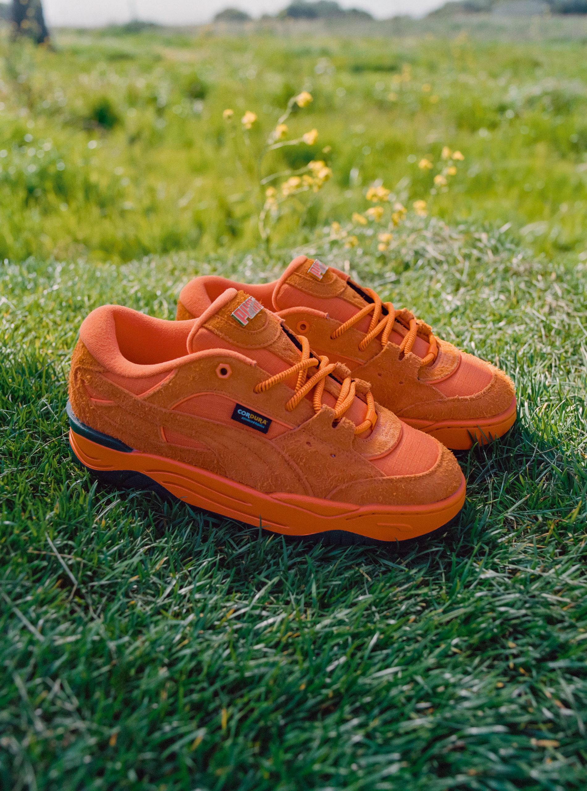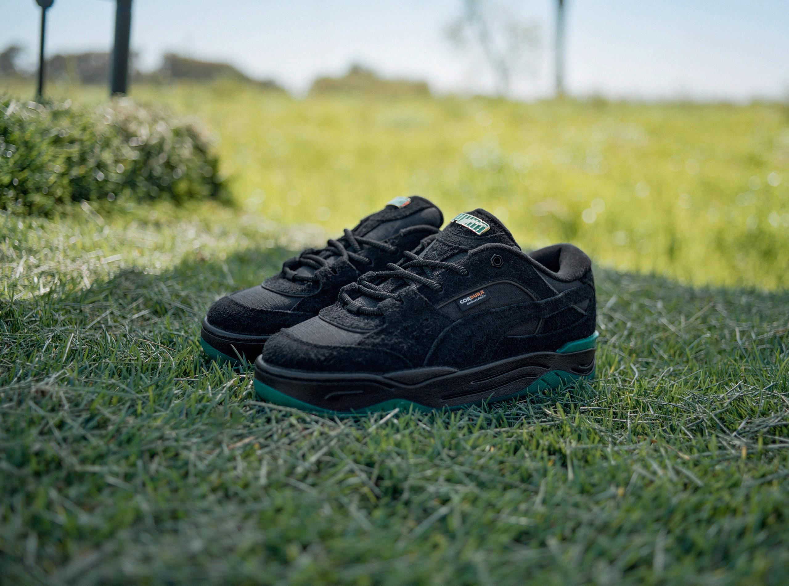 In addition, a Carrots x PUMA 180 appears in a black and orange colorway. The upper uses Cordura, a material that is weather-resistant, and often used for backpacks, shoes, and military clothing. The sneaker comes with green details on the upper and a green outsole.