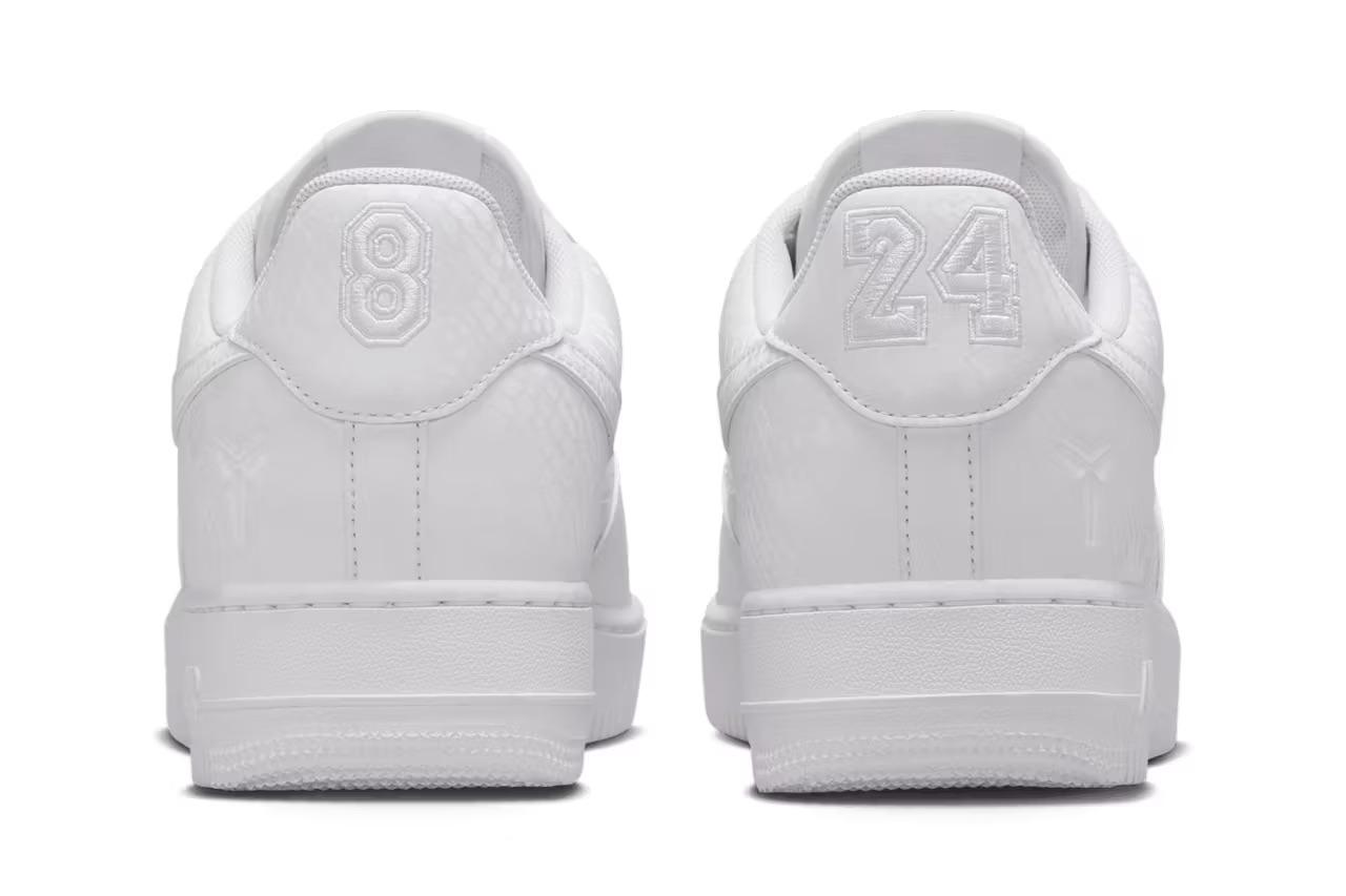 The pair come in a full snakeskin-textured upper, nodding to Kobe's Black Mamba alter ego. From a distance, it looks like a classic Triple White. Up close, the details tell another story. The '8' and '24' heel embroidery bridges the two chapters of Kobe's career. A silver dubrae on the laces adds a premium touch etched with 'Forever' text.