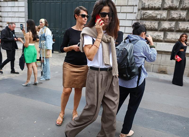 Looking at the attendees, there was no lack of streetwear and sneakers this year. During the last week of September every year, the question is what the weather will bring. Wearing layers then is always a strong choice, this year as well. Blazers and cardigans seem to be making a return. Leather jackets, oversized or cropped, were also favorite clothing items among attendees.