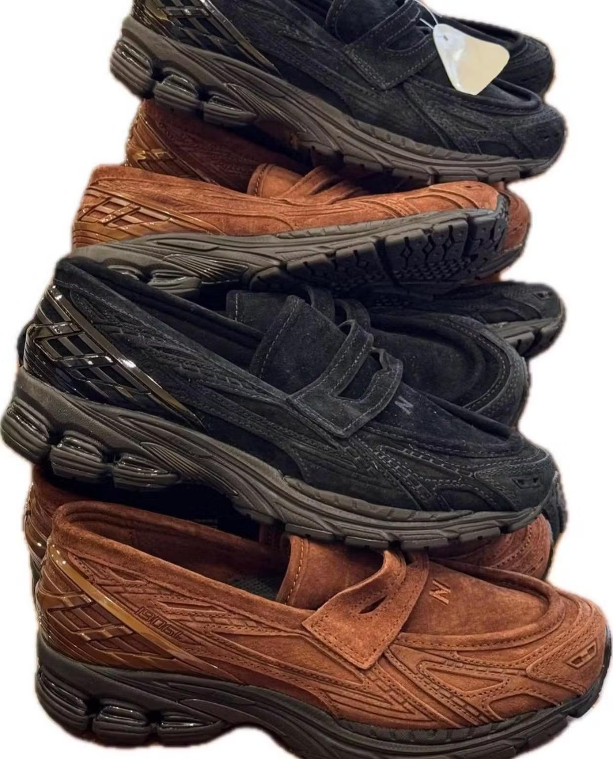 The loafer boasts a sophisticated design with a sturdy upper. The first colorway features a black upper with a dark brown sole, drawing inspiration from the 1906 sneaker. The second pair comes in a cognac colorway and uses the same brown sole.