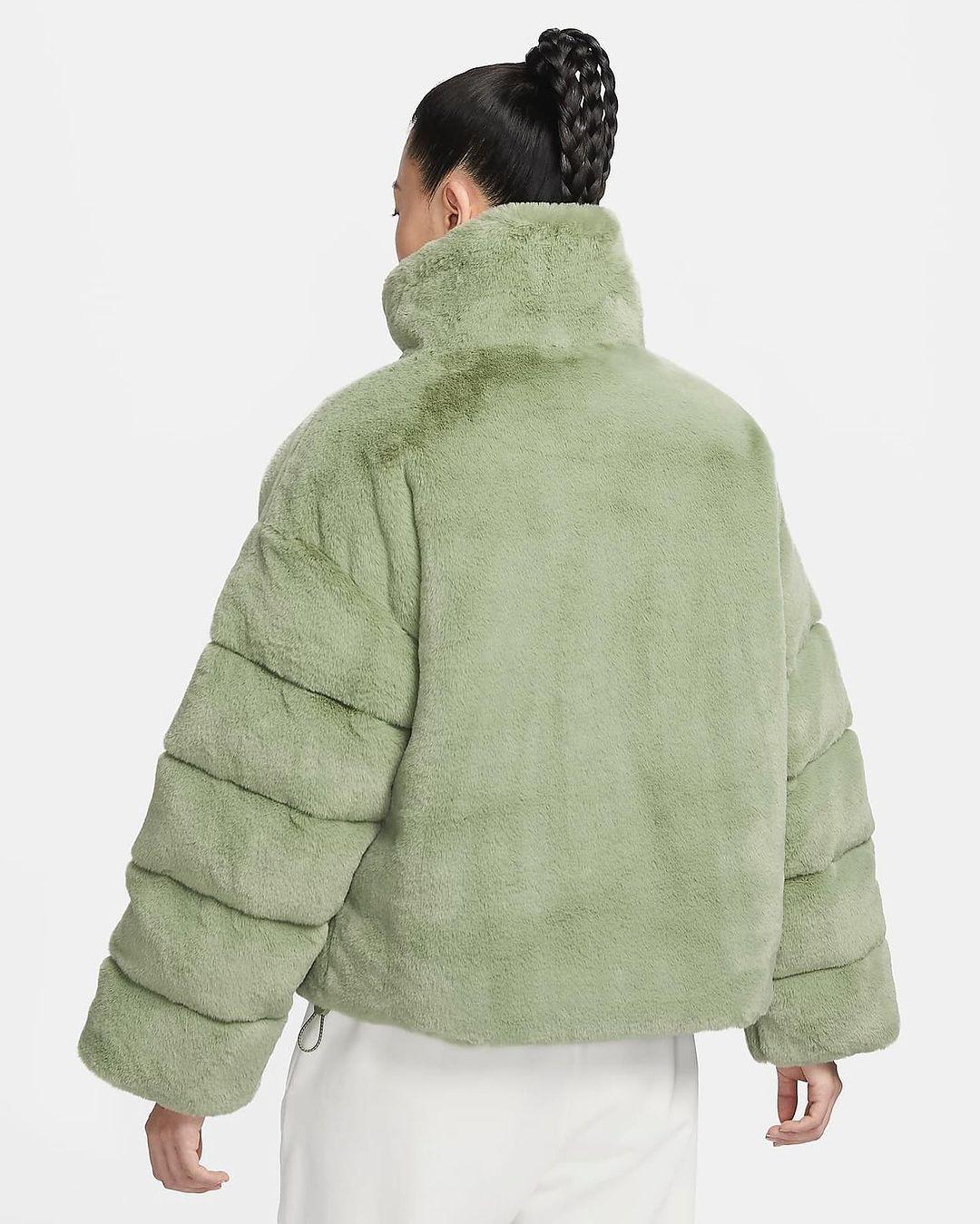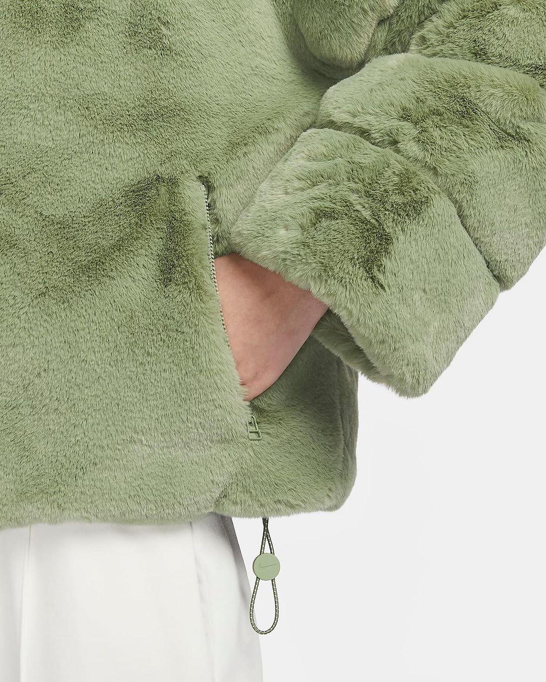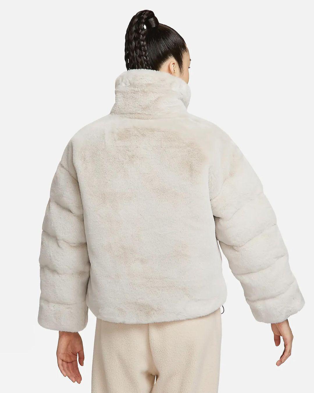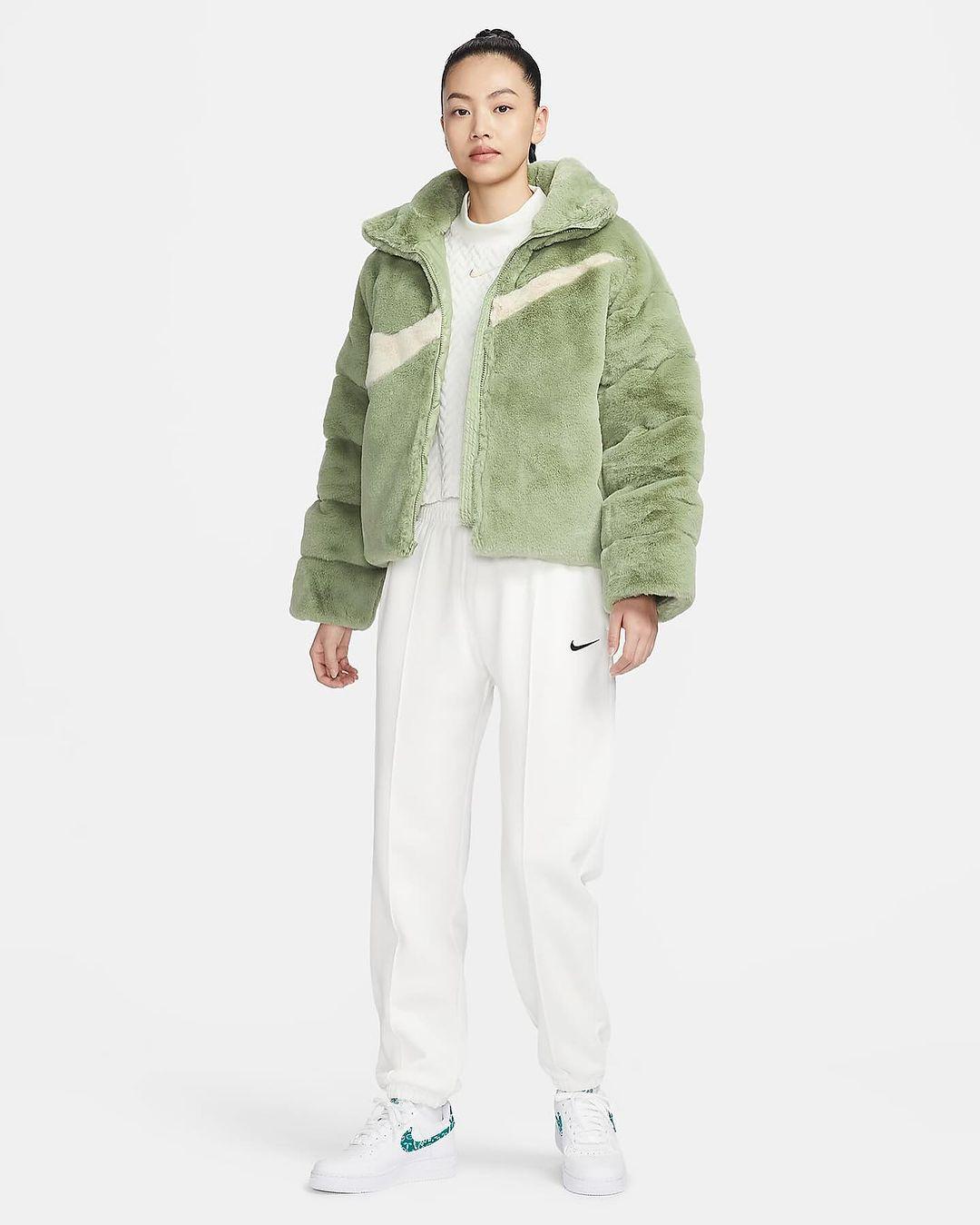Nike is packing big this winter. Recently, the first images of a faux fur puffer jacket with the Big Swoosh on the front appeared. The Big Swoosh has appeared on viral fleece blanket, handbag and faux fur jacket in the past. Check out the official images of the Nike puffer jacket here.