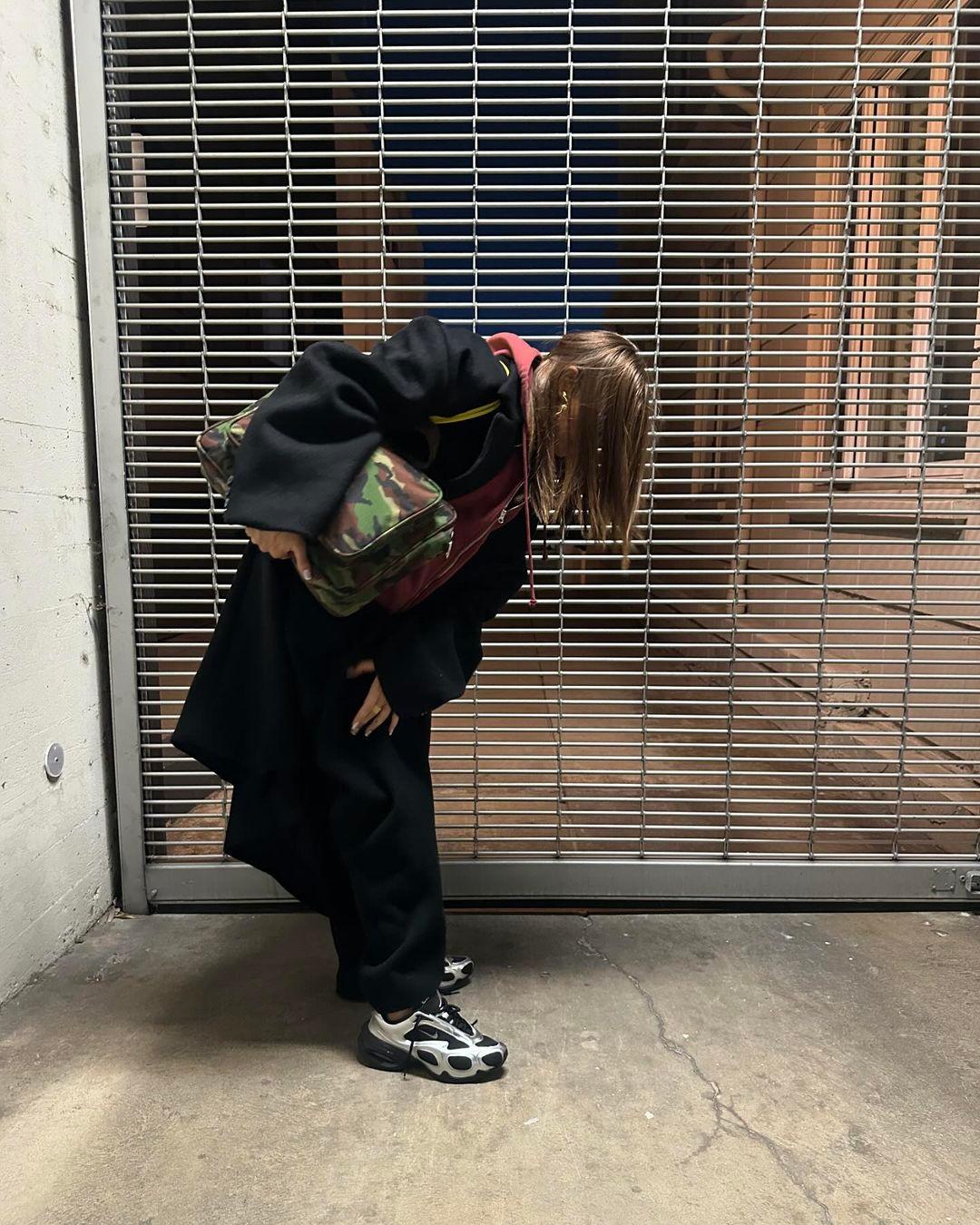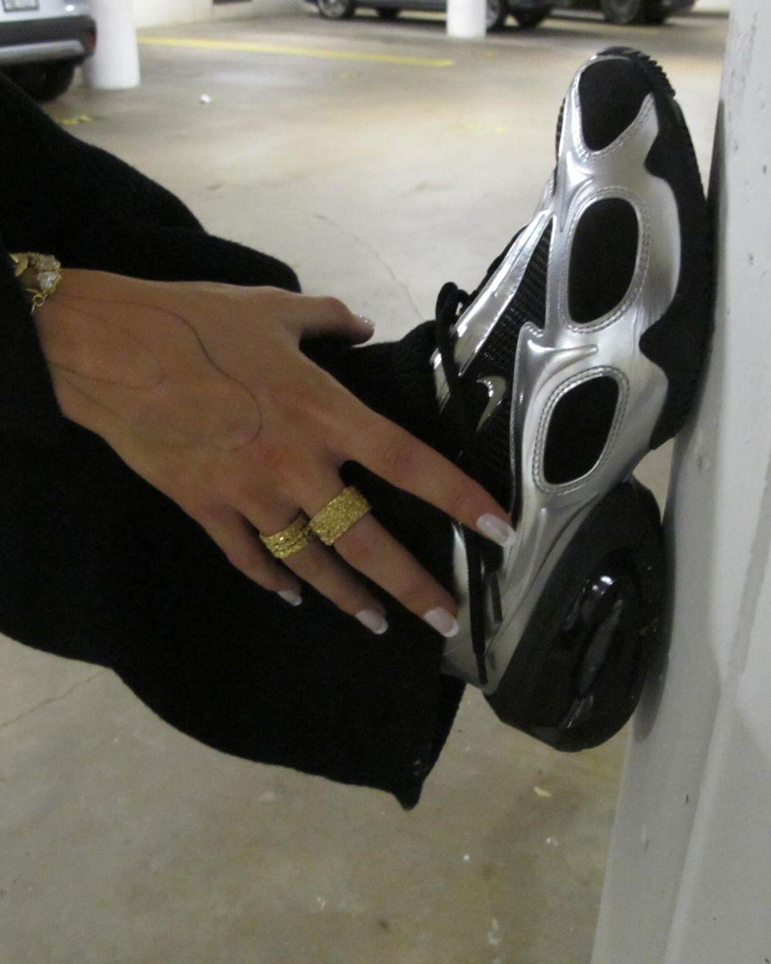On Veneda Carter's Instagram account (@venedaacarter), the creative can be seen wearing the unreleased Air Max Muse. The sneaker features a silver colorway with black elements. The silhouette combines the early 2000s aesthetic with a redesigned Air unit.