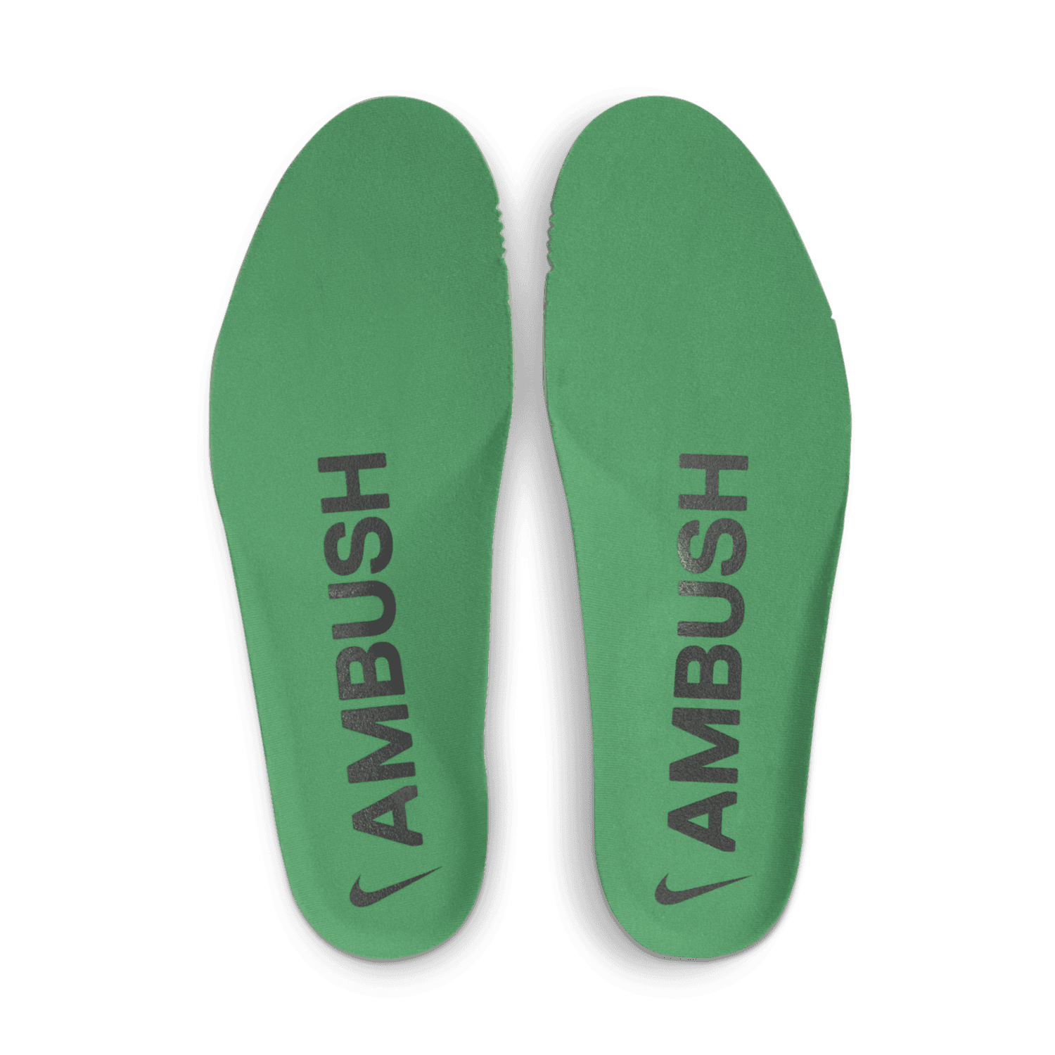Another eye-catching detail are the 'University Red' Swooshes, which are placed on both the heel and nose of the shoe. Finally, of course, the iconic 'AMBUSH' logo cannot be missing, it shines in striking 'Apple Green' on the heel.