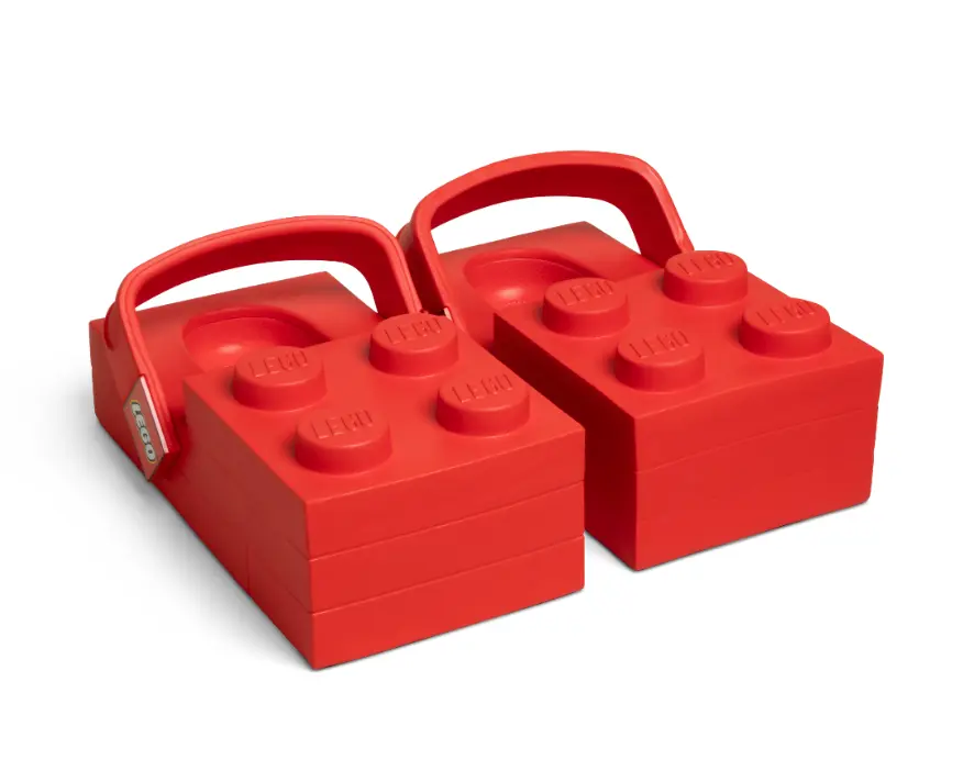 Zoals je kunt zien, is de esthetiek puur LEGO. Het volledige design is in feite een oversized LEGO-steen die je kunt dragen. We krijgen hier een volledig rode colorway, met vier studs voorzien van logo’s.