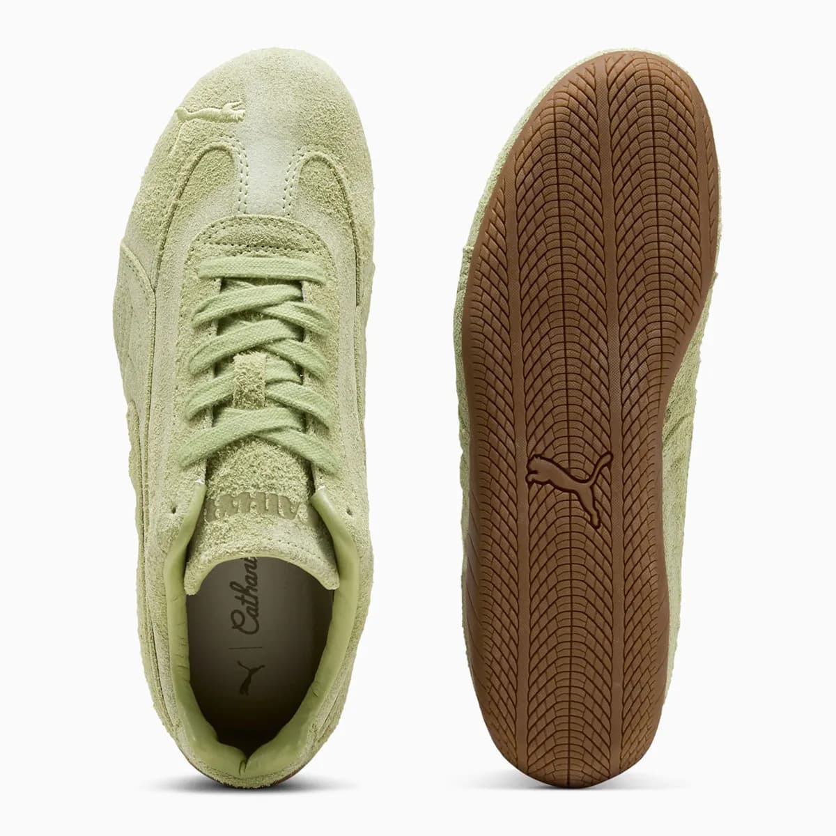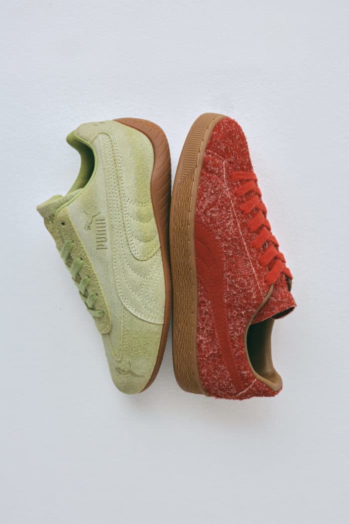 Danielle Cathari werkt voor het eerst samen met PUMA en brengt haar eerste samenwerking met het merk uit, waarbij ze twee klassiekers opnieuw interpreteert: de Danielle Cathari x PUMA Suede Fuzzy ‘Mars Red’ en de Speedcat Washed ‘Pistachio Green’.