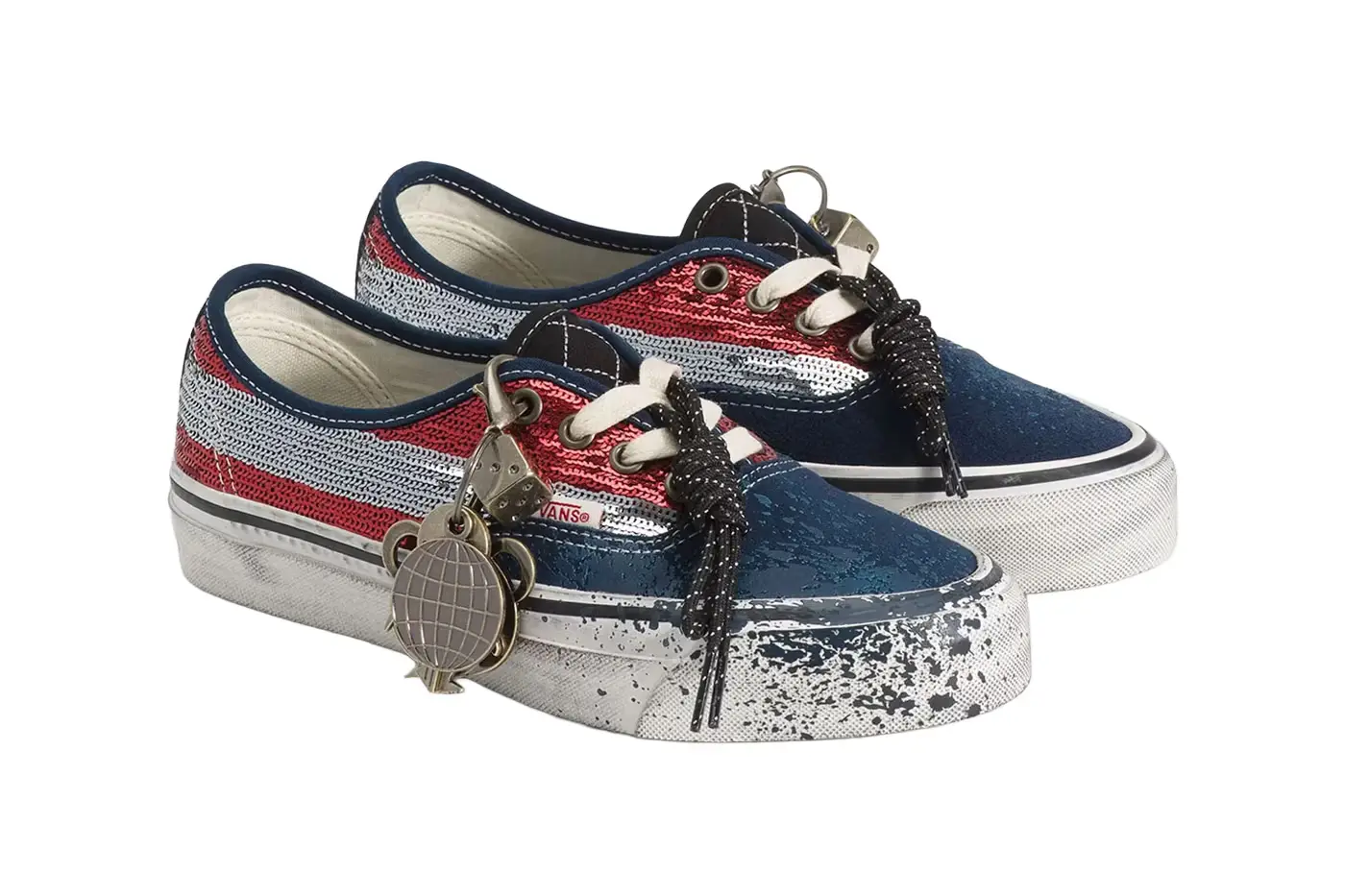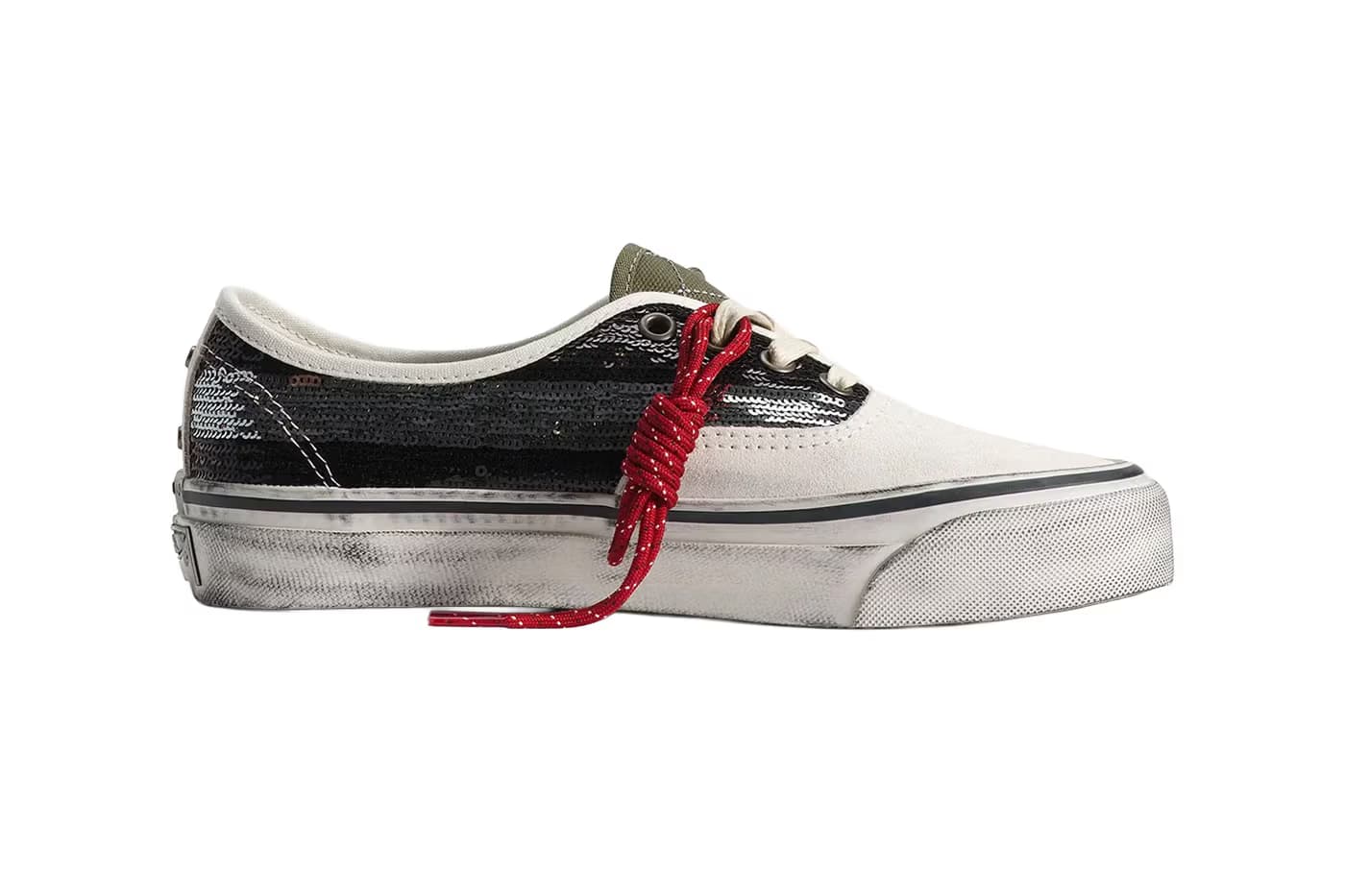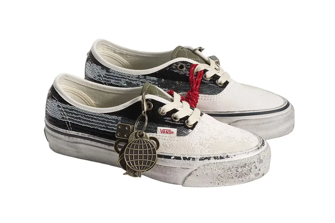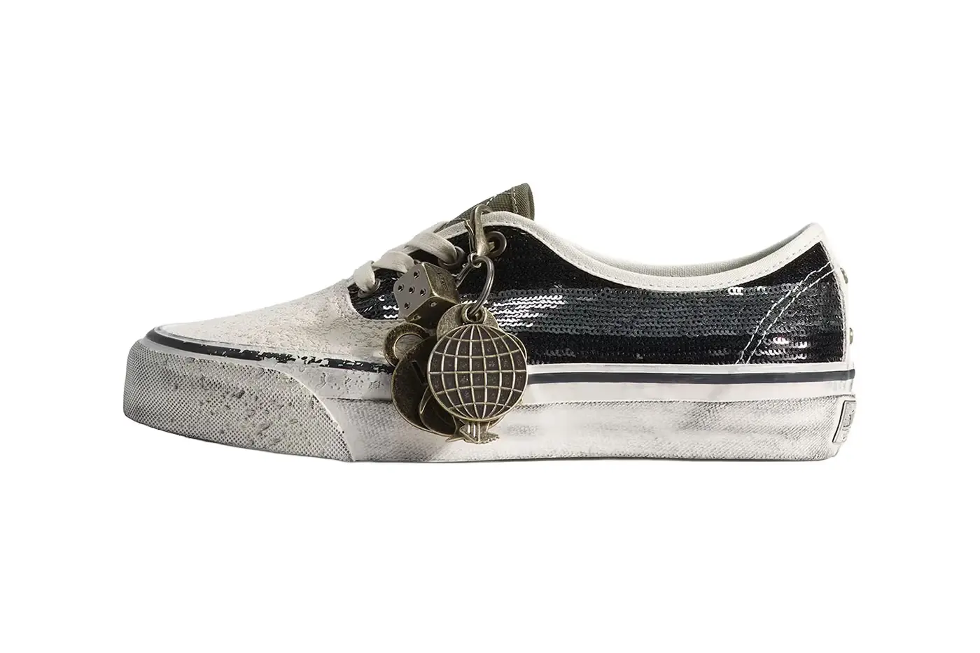 De sneakers zijn voorzien van gestreepte pailletten langs de zijkanten, een canvas upper en speelse details zoals paint splatters op de toe box en een pre-distressed midsole. Met name dat laatste zien we de laatste tijd steeds vaker terug bij Vans, vooral binnen hun Premium-lijn (hoe ironisch dat stiekem ook is).