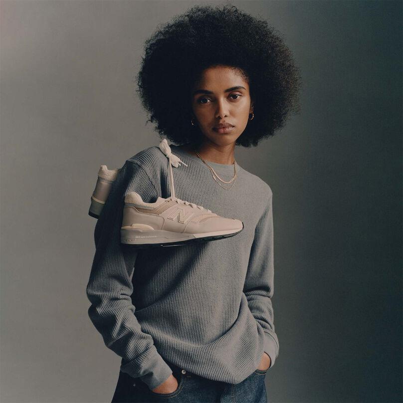 Met deze release maakt de New Balance 997 zijn debuut in de Made in USA collectie, die momenteel geleid wordt door Aimé Leon Dore oprichter Teddy Santis. De 997 heeft een ingetogen colorway. De upper is gemaakt van beige mesh en wordt bekleed door suède en leren, grijze overlays.