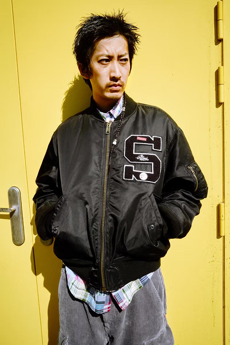 De samenwerking met Supreme komt dan ook als een donderslag bij heldere hemel, maar we klagen niet. De Spring 2025 collectie bestaat uit diverse kledingstukken en accessoires: van MA-1 en patchwork-jackets tot hoodies, shirts, shorts en accessoires die de logo’s van beide merken combineren.