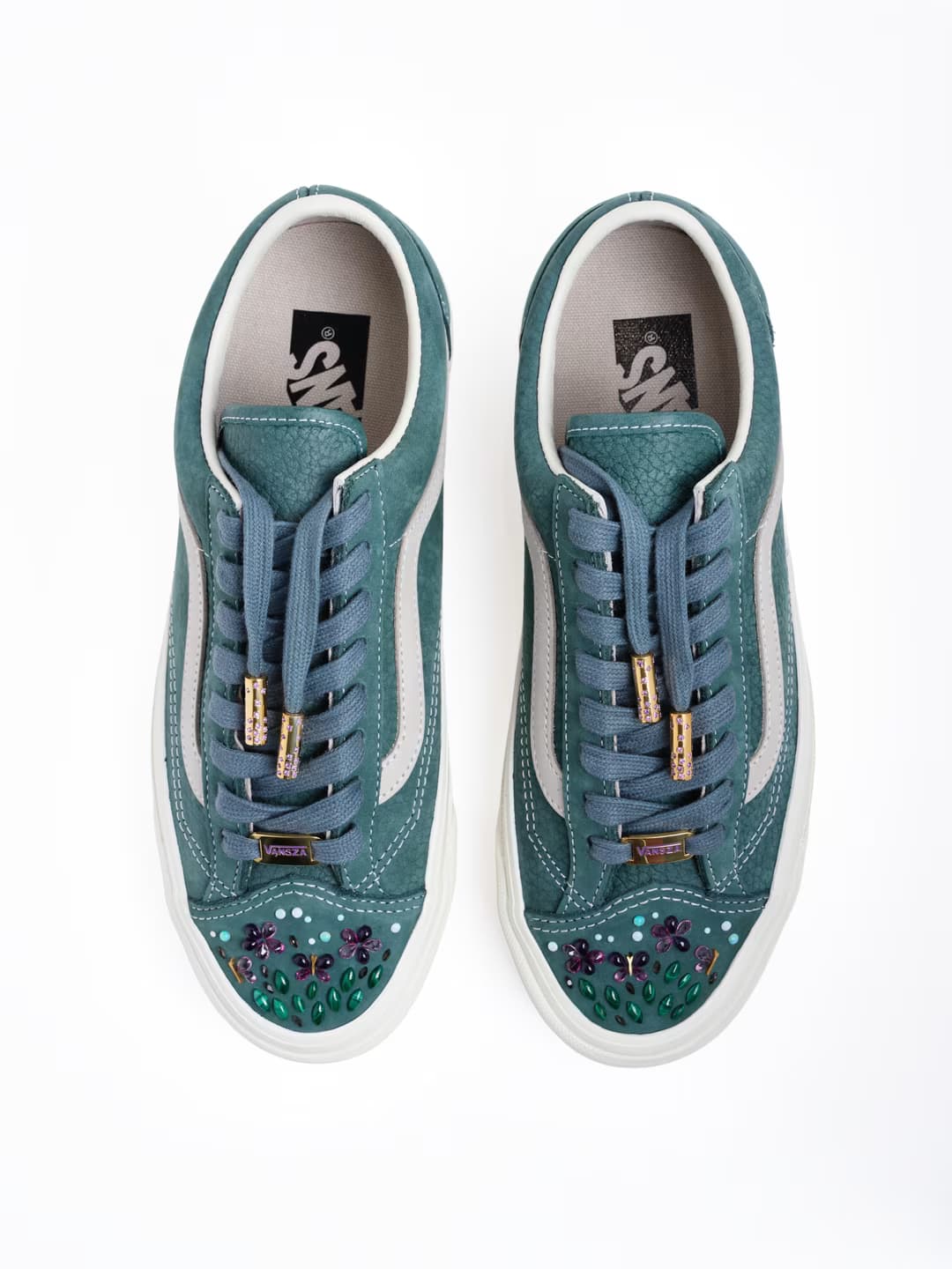 De andere vier sneakers, eveneens ontworpen door Goatley en verdeeld over de Authentic- en Old Skool 36-silhouetten, dragen de namen Enchanted Forest, Radiance, Camo / Earth en Temperature Ctrl, en zijn afgewerkt met diverse edelstenen.