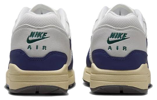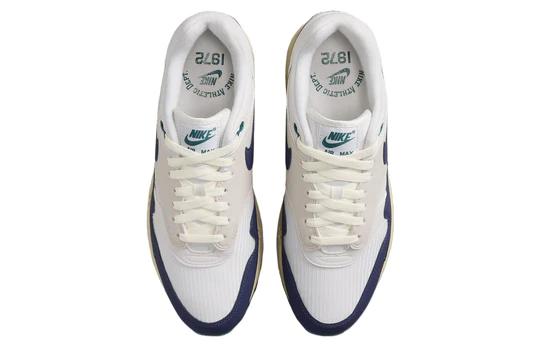De Nike Air Max 1 Athletic Department ‘Navy’ heeft een tijdloze colorway. De Navyblauwe overlays en details op het bovenwerk contrasteren mooi met de witte upper. Op de neus is een extra Swoosh geplaatst. Groene details op de hiel en tong geven het paar een unieke touch.