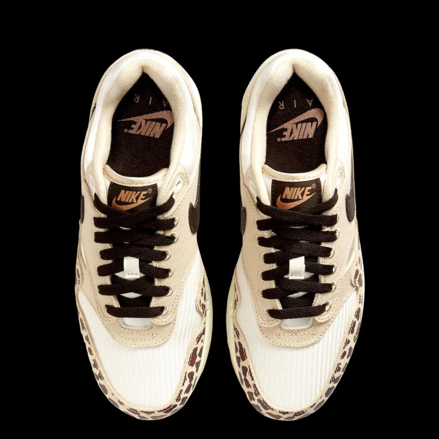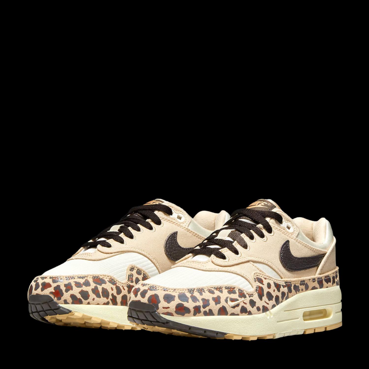 Een andere unieke colorway uit het rijtje, is de Air Max 1 ’87 WMNS ‘Leopard’. Het paar is exclusief voor de dames en verschijnt dan ook alleen in damesmaten. De mudguard komt met een luipaardenmotief en op het middenpaneel is een zwarte, leren Swoosh geplaatst.