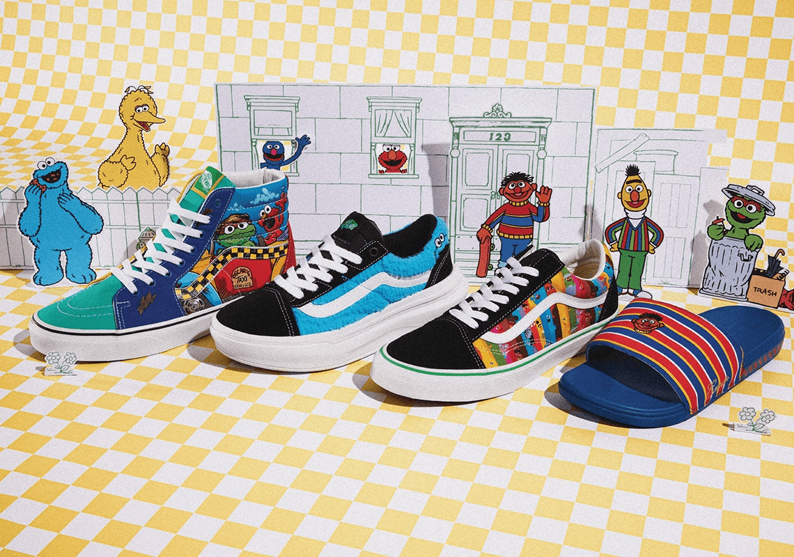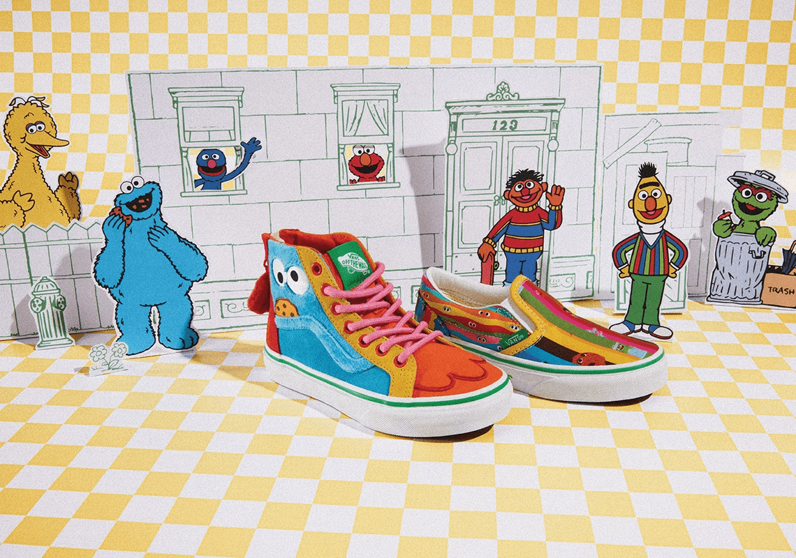 Die Sesamstraße x Vans Kollektion umfasst eine Reihe der beliebtestem Vans-Silhouetten: Unter anderem den Vans Authentic, Old Skool und den Sk8-Hi, die allesamt mit Sesamstraßen-Gesichtern kommen. Mit dabei sind zum Beispiel Big Bird, Ernie, Bert, das Cookie Monster, Elmo oder Oscar the Grouch.