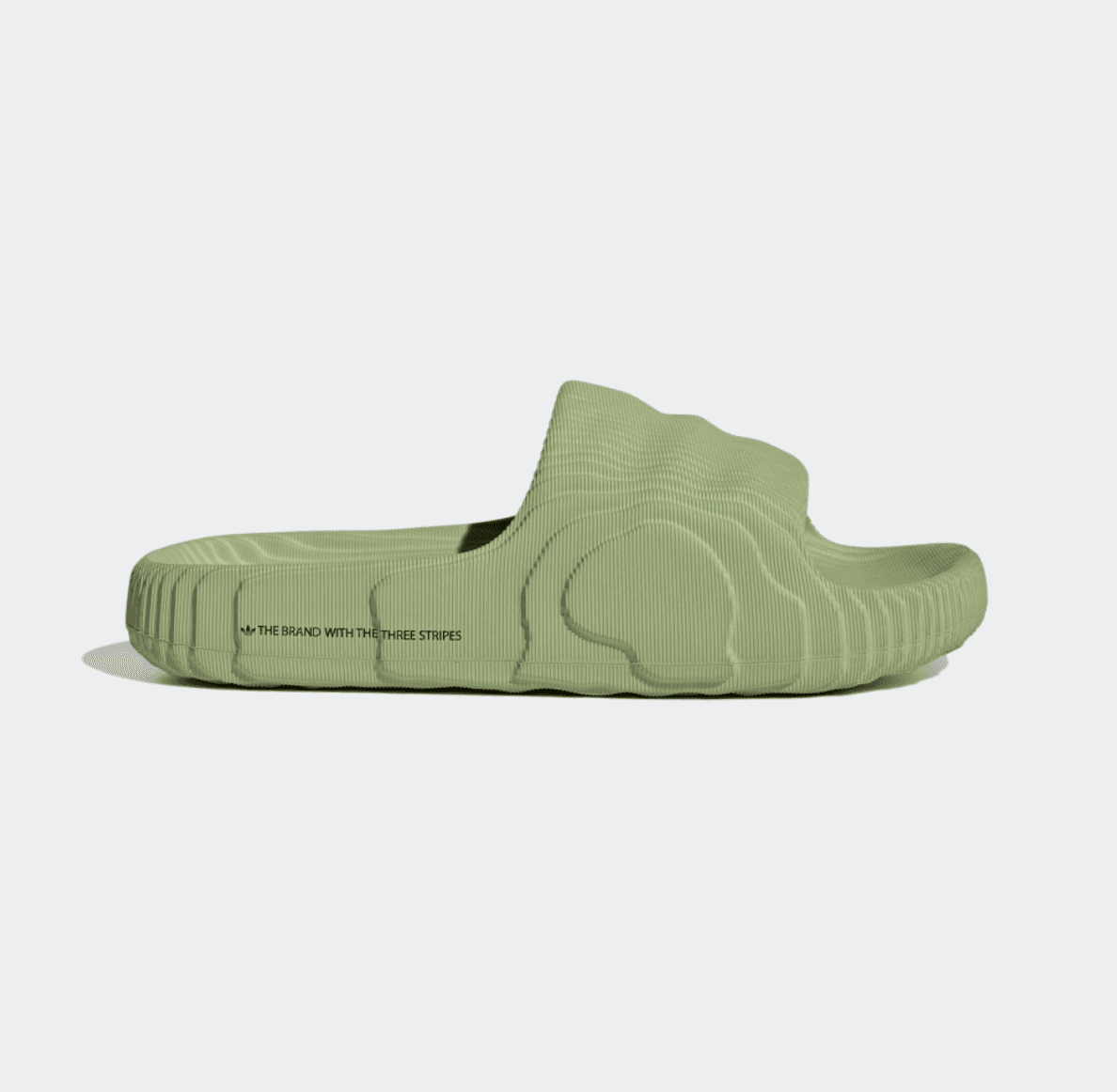 Im Mai 2022 wurde die adidas Adilette bereits in den Farbvarianten 'Magic Lime' und 'Desert Sand' veröffentlicht. Diese Paare waren hellgrün und beige gefärbt. Das Obermaterial hat einen gewellten Look und wurde mit verschiedenen Schichten versehen.