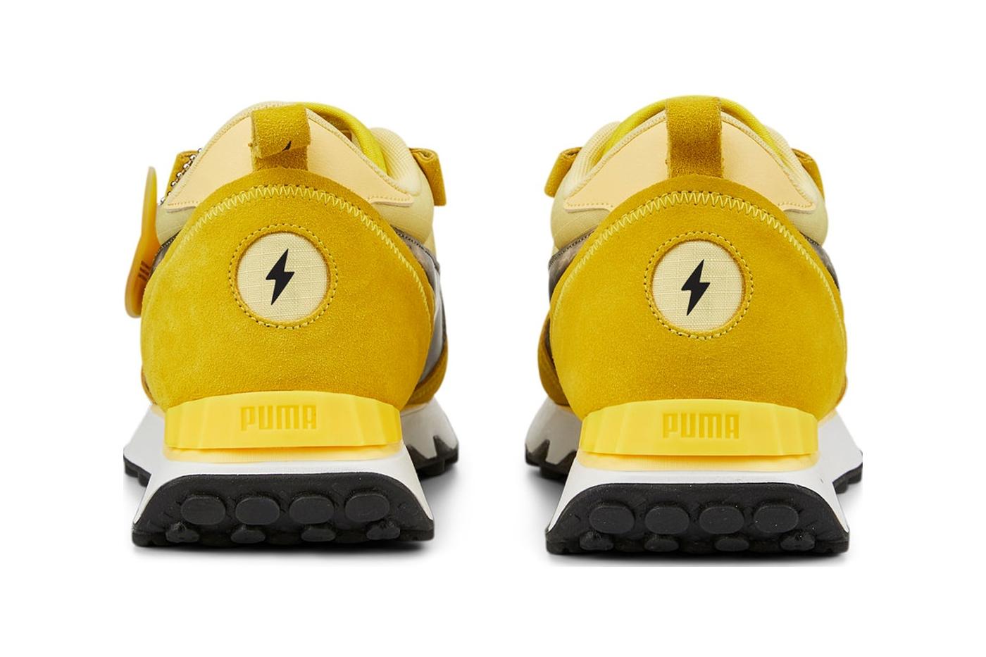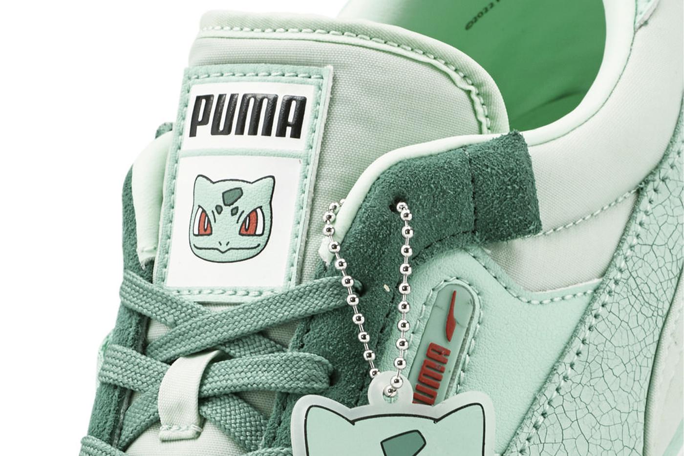Bulbasaur (Bisasam) und Pikachu erscheinen auf dem PUMA Rider FV. Charmander (Glumanda) hingegen kommt auf dem Basketballschuh Slipstream Lo 1987 und Squirtle (Shiggy) auf einem PUMA Suede. Jede Silhouette nimmt die unterschiedlichen Farben der jeweiligen Pokémons auf, wobei die Grafiken auch auf den Fersenlaschen zu erkennen sind.