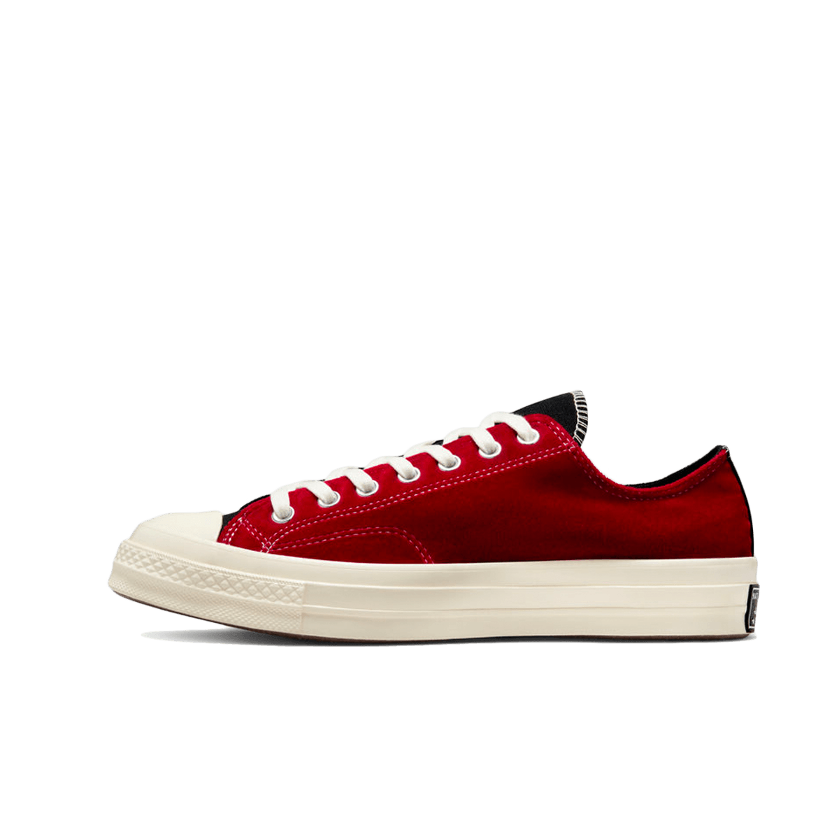 Der Chuck 70 baut auf diesem Erbe auf, mit verbesserten Materialien, einschließlich eines schwereren Canvas-Obermaterials, höherem Gummi für mehr Haltbarkeit und verstärkten Nähten für lang anhaltenden Tragekomfort. Eine gepolsterte OrthoLite-Einlegesohle sorgt für modernen Komfort, während Details wie das glänzende Seitenwandband und das klassische Fersenkennzeichen seinen Wurzeln treu bleiben.