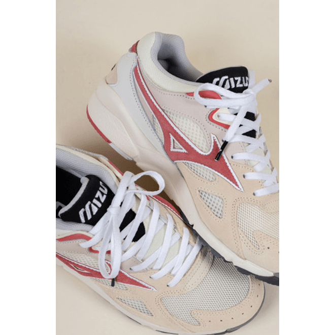 Das Obermaterial des sportlichen Designs, das in verschiedenen Farbvarianten für jeden Geschmack erhältlich ist, besteht aus Mesh und Nylon mit hochwertigen Leder-Overlays. Eines der Branding-Elemente ist das Runbird"-Logo, das sich seitlich auf dem Obermaterial befindet, während das Mizuno-Logo auf der Zunge zu sehen ist.