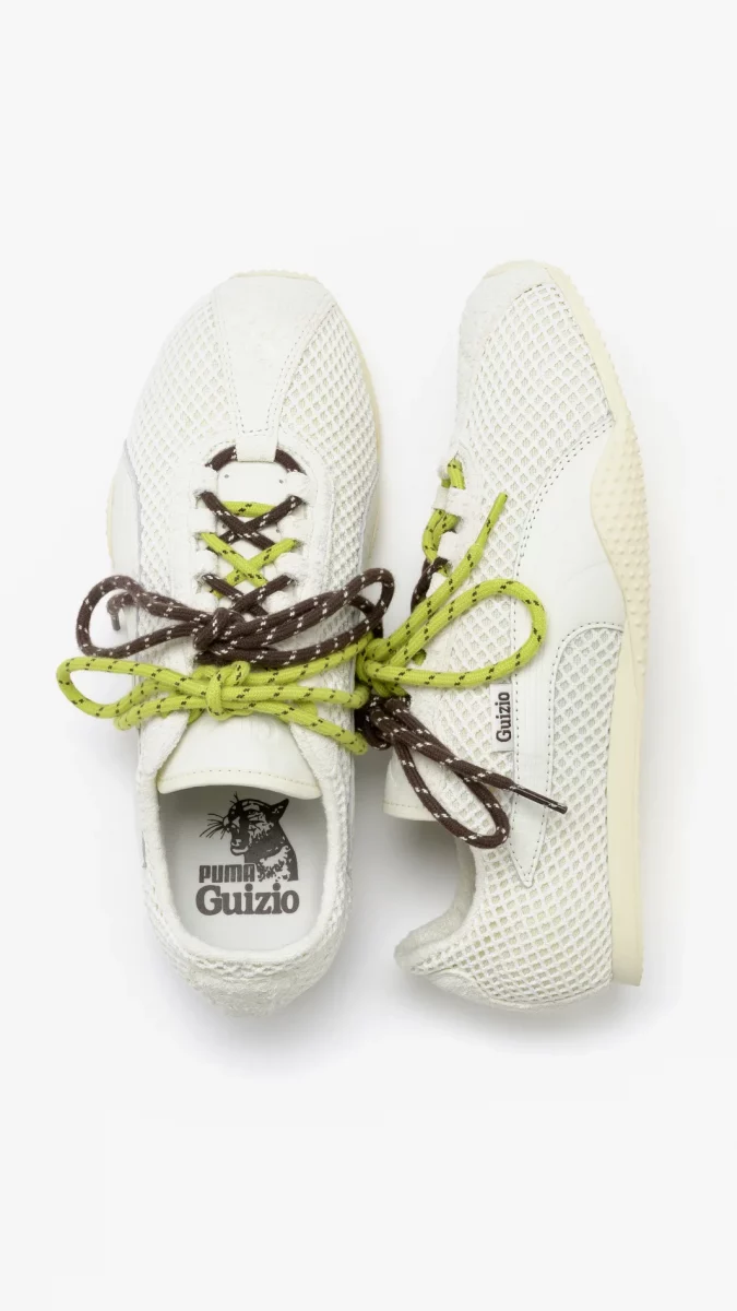 The PUMA H-Street first debuted in the early 2000s, making it a perfect fit for the Y2K trend currently dominating the fashion scene. Guizio’s take on the design combines soft suede and breathable mesh, with the standout detail of two sets of rope-style laces in earthy tones.