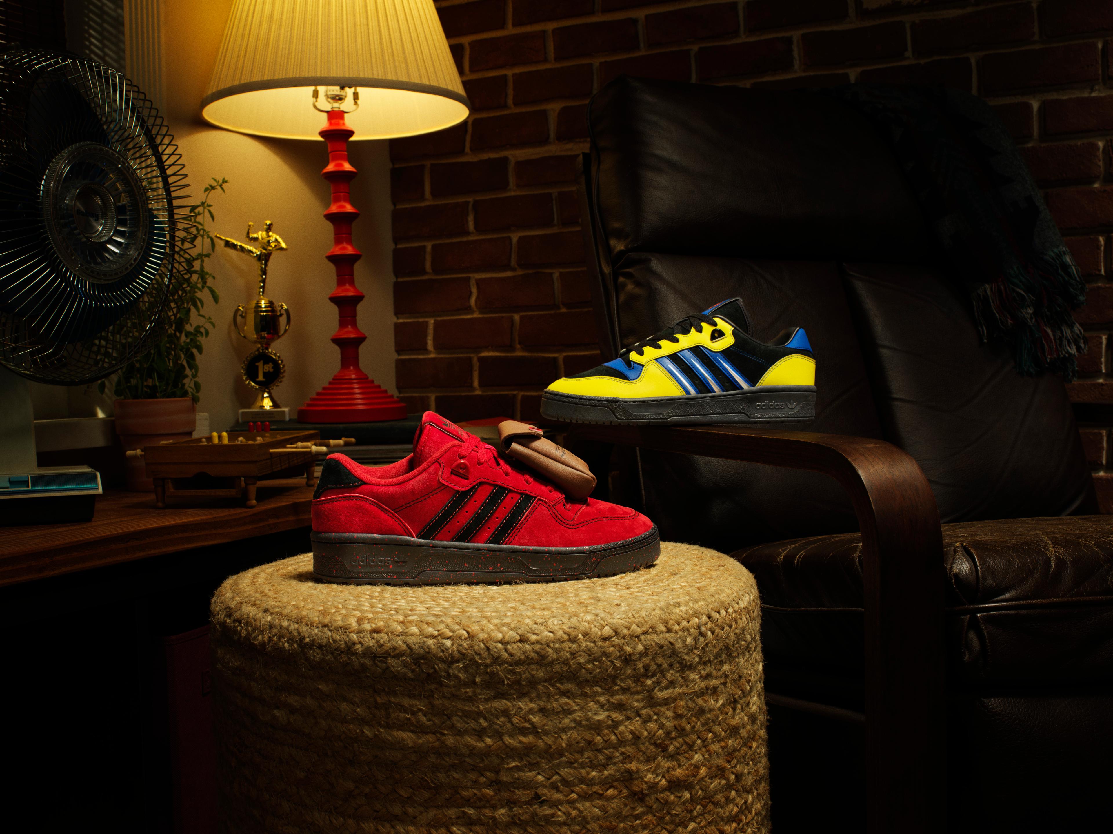 As mentioned earlier, the collection also includes two adidas Rivalry Low colorways: the first is inspired by Deadpool with a bright red suede upper, black accents and a leather storage pouch on the tongue - a nod to Deadpool's costume.