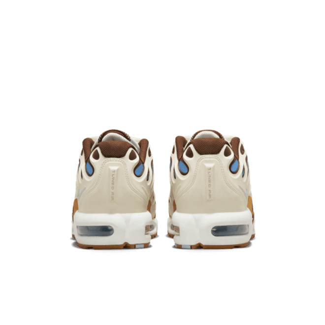 The new generation Tn series is off to a great start with the release of the Air Max Plus Drift 'Phantom Cocoa Wow'. This colorway displays a striking gradient from light brown to blue. At the same time, the TPU exoskeleton has a sail-white hue, accented with brown accents along the edges for a more striking look. The Swooshes and Nike logo on the tongue come in a light blue hue.
