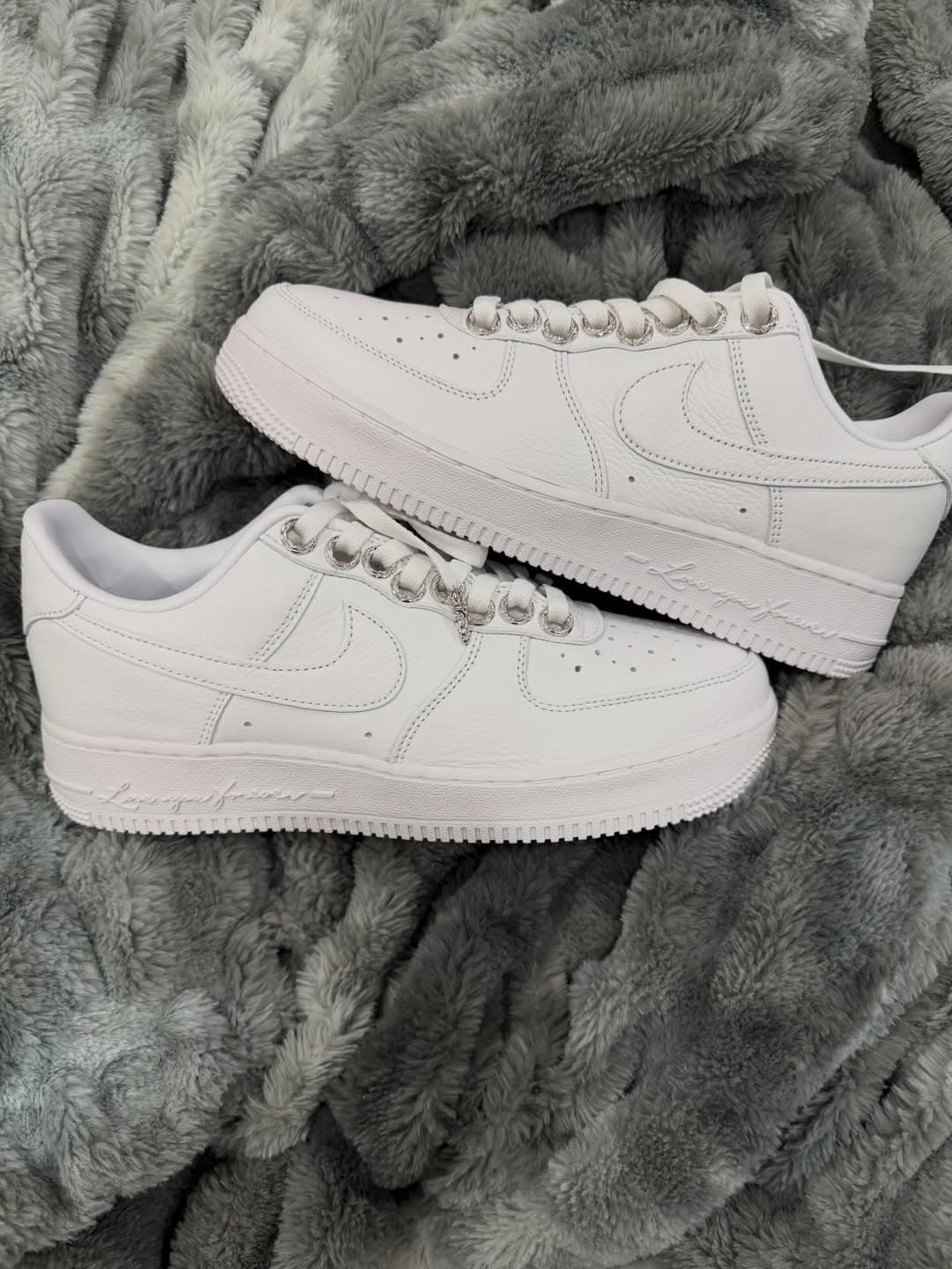The sneaker comes in an “All-White” colorway, the most beloved version of the Air Force 1 Low. This is not the first time Drake, the creative mind behind NOCTA, has put his touch on this silhouette. Through his collaboration with Nike, he has already released several colorways featuring the well-known “Love You Forever” quote on the outsole.