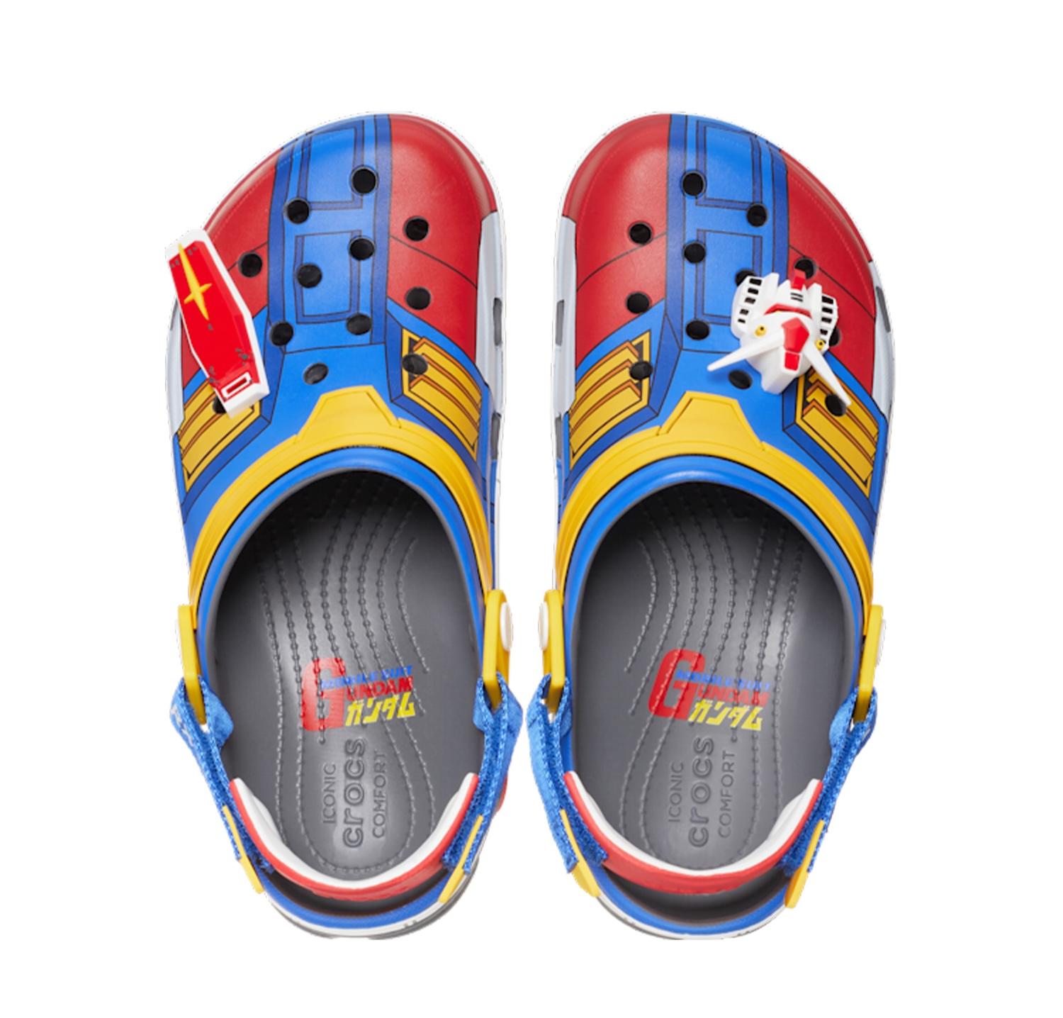 The Gundam x Crocs collab is exactly what you would expect from it. The All Terrain Clog silhouette is used for this collaboration. The Crocs combines the signature colors of blue, red, white, and yellow, which also appear on the Bandai robots from the series.