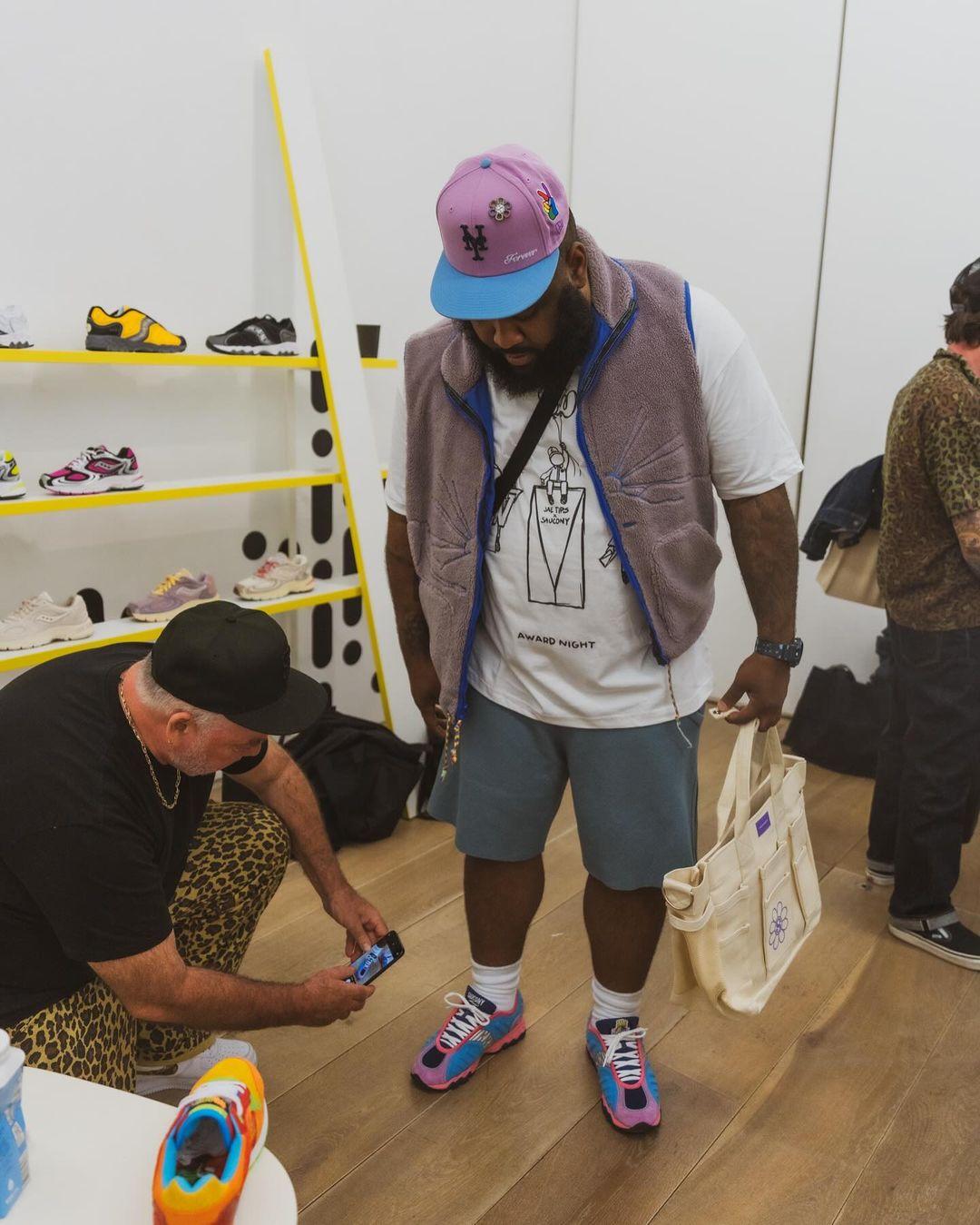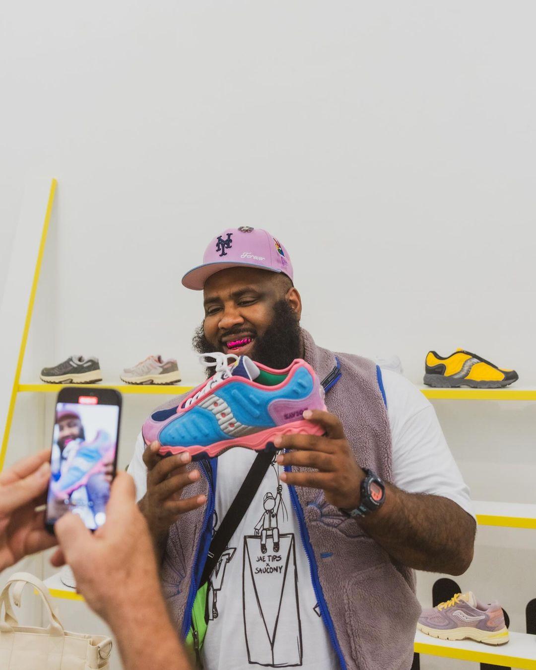 Jae Tips is a well-known face at Saucony. In 2023, the artist unveiled his first sneaker collab with the American brand: the Jae Tips x Saucony Grid Azura 2000 'Remember Who Fronted'. Shortly after, the duo released the Saucony Grid Shadow 2 'What's The Occasion,' followed by a Saucony ProGrid Omni 9 release.