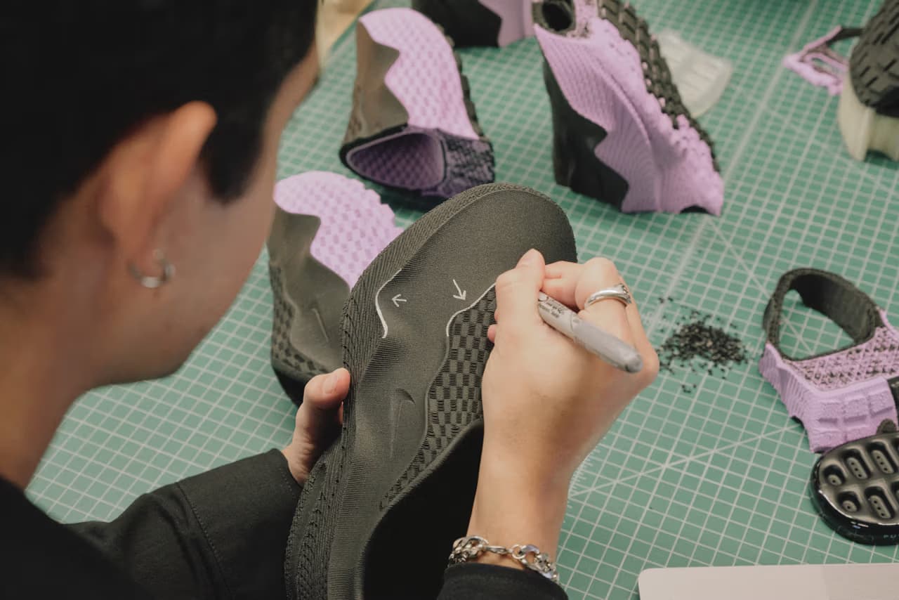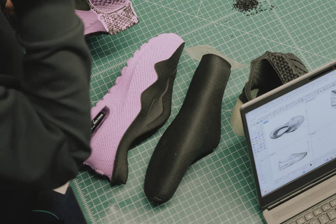 This development opens the door to endless color combinations, with the first example being a purple-and-black colorway. The currently shown sample demonstrates how a completely black sneaker can be enhanced with purple details applied directly to the design.
