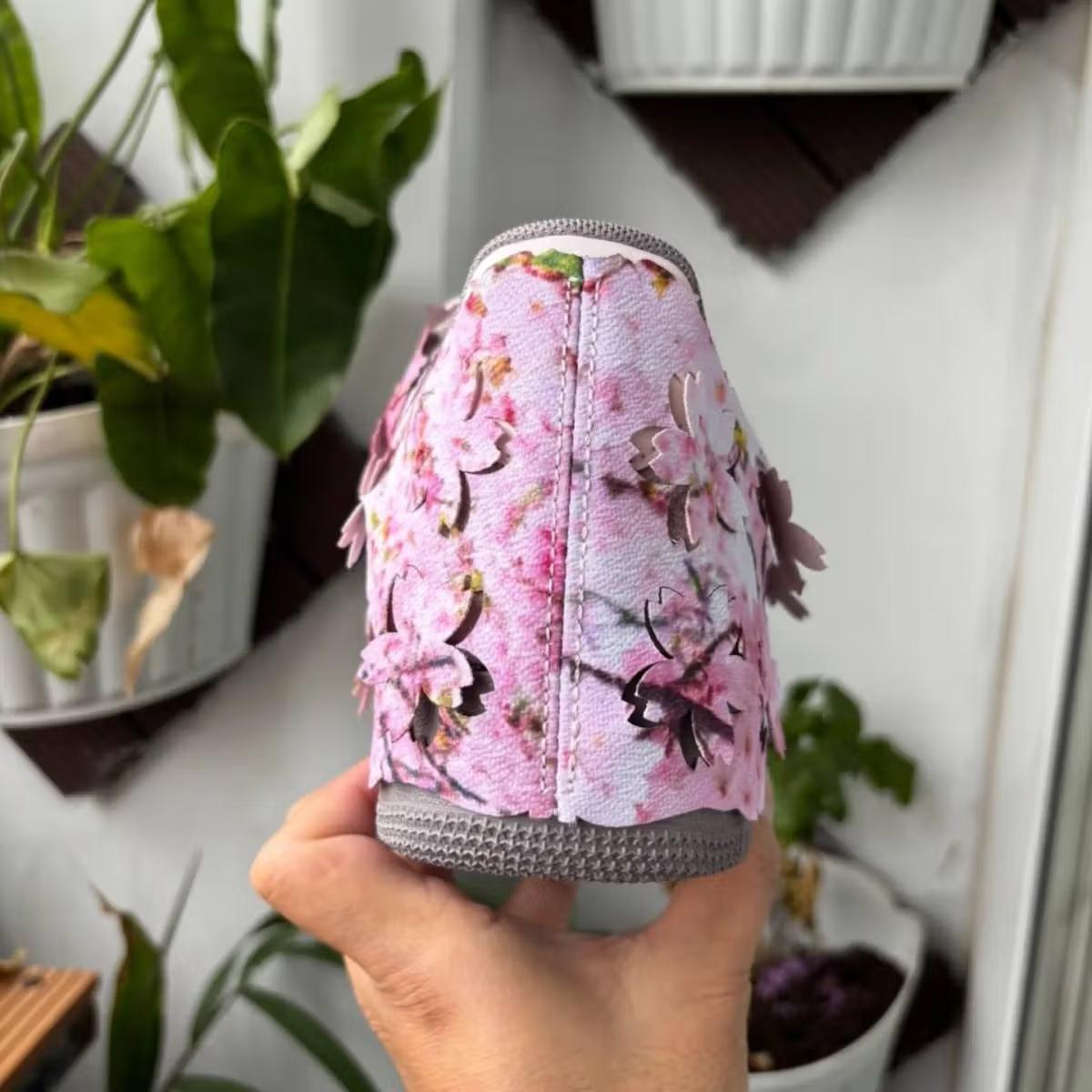 To maintain balance in the design, grey accents on the sole and lining offer a subtle contrast to the floral upper. A playful sneaker that, once the upper is removed, can also be easily worn as an everyday shoe.