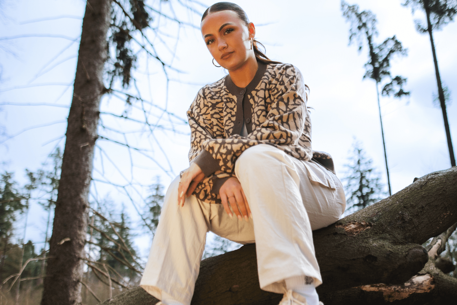 On the fifth day, Ike reveals her second favourite outfit. “We are all familiar with the iconic elephant print on various Air Jordan models. When I saw it on this cardigan, it was an instant must-have for me,” says Ike. “The relaxed fit also allows me to easily wear it as a layer, which is ideal during the changeable spring days.”