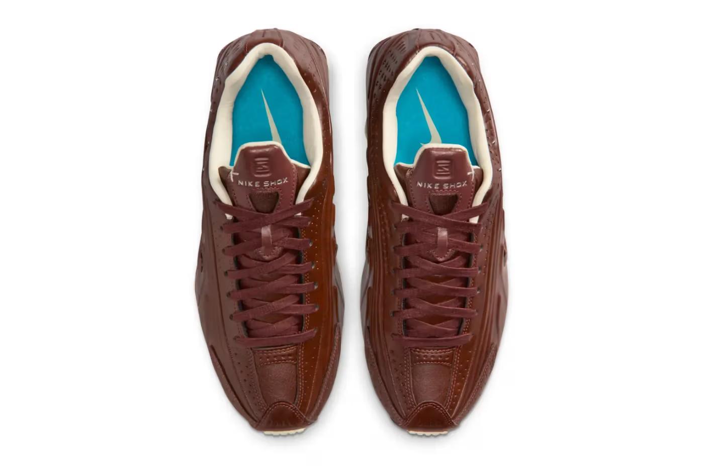A turquoise insole provides a fresh contrast. The signature Nike Shox cushioning in the sole comes in an off-white shade that complements the colorway perfectly.