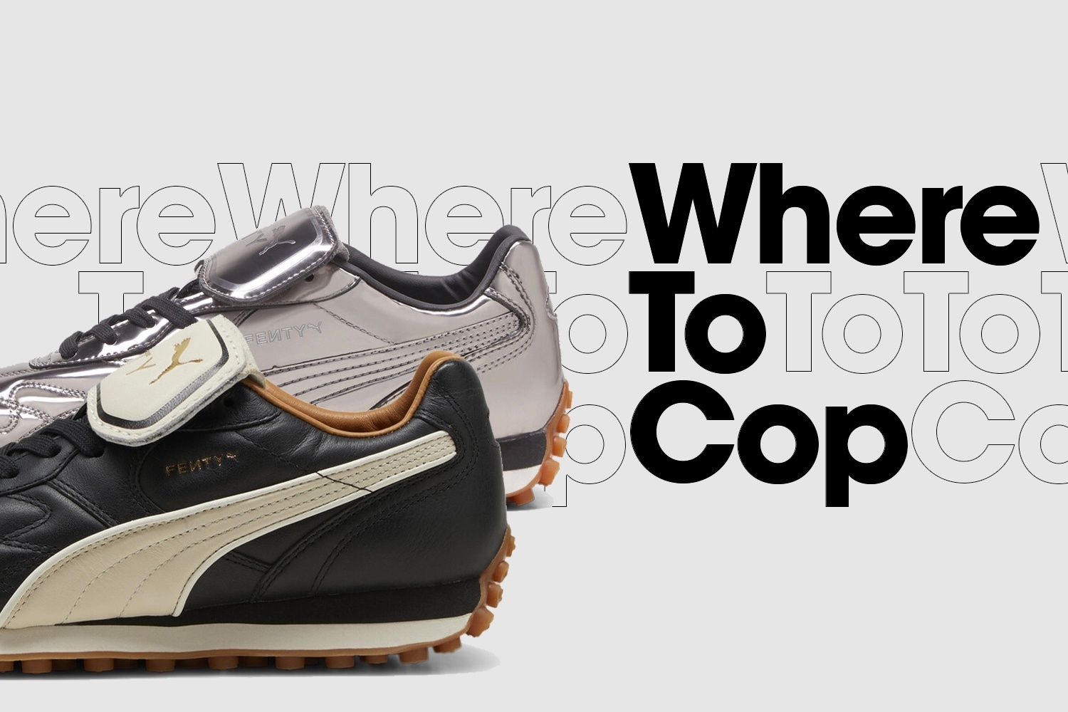 Besides the classic black and white version, the chrome version exudes elegance with lasered logos and chrome leather details. This model also features football-inspired elements, such as a stitched leather upper and gum sole. In addition, silver chrome details and the embossed Fenty x PUMA logo add a modern twist to the design.