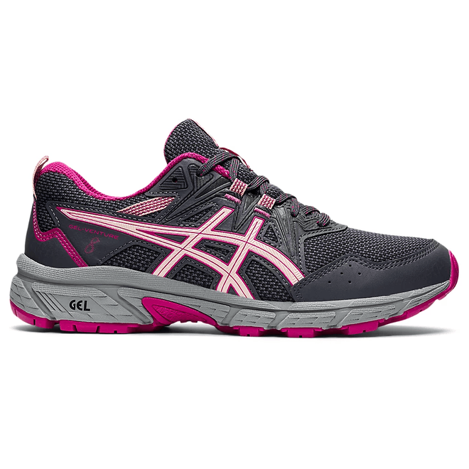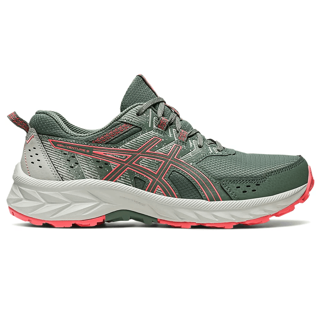 The Venture series builds upon ASICS' core GEL cushioning technology (primarily in the heel) to soften impacts on rough terrain, teamed with a reliable EVA midsole for overall shock absorption. Its uppers are typically constructed from breathable mesh with synthetic overlays to reinforce structure and protect against abrasion, and the outsole features aggressive lugs to maintain traction on dirt, gravel and uneven surfaces.