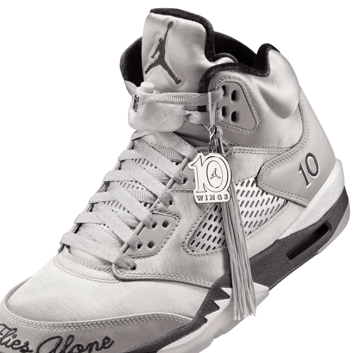 Oorspronkelijk bericht 4 juli 2025 – In het voorjaar kregen we de eerste beelden te zien van de Air Jordan 5 ‘Wings’, een zilveren sneaker die ter ere van het 10-jarige bestaan van het Jordan Brand Wings Scholars Program is ontworpen. Nu toont Nike de officiële beelden van de sneaker, die dit najaar wordt gereleased.
