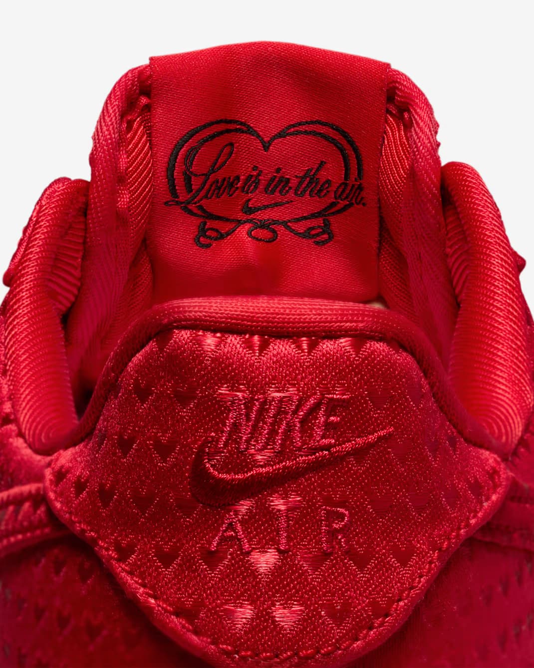 Het paar komt met verschillende romantische details, waaronder een hartvormige locket charm die aan de veters is bevestigd en de tekst “Love Is In The Air” op de tong. Daarnaast zien we ook een duidelijke verwijzing naar het thema op de binnenzool, waar een engeltje is afgebeeld.