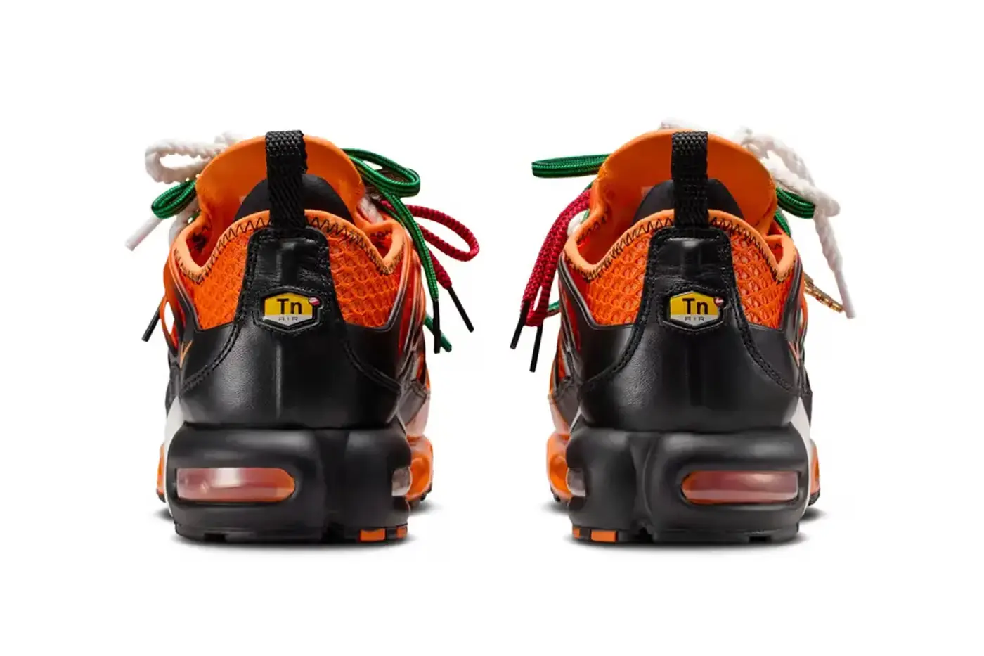 De HOMECOMING x Nike Air Max Plus verschijnt in de colorways: ‘Black’ en ‘Safety Orange’. Twee totaal verschillende looks, maar allebei met dezelfde energie.