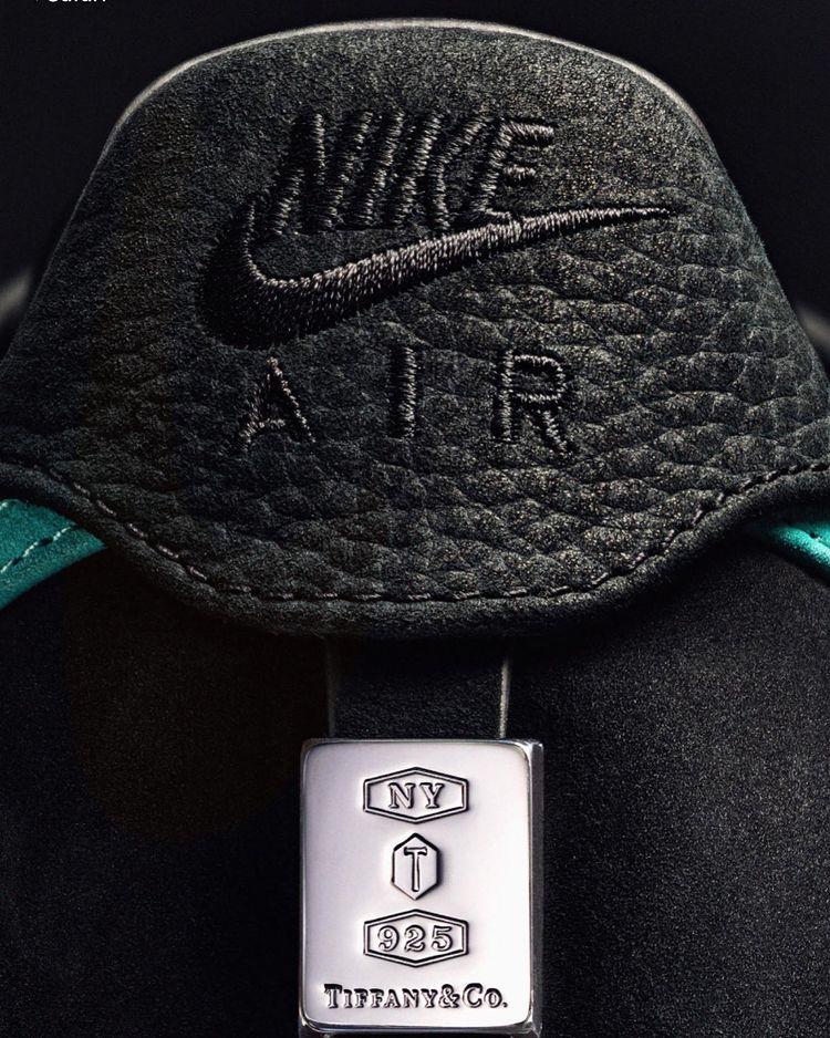 De sneaker heeft een bovenwerk van hoogwaardig zwart suède en een Swoosh in het klassieke Tiffany Blue – de bekende turquoise kleur van het merk. We zien ook “Tiffany” letters op de tong en branding op de hiel.