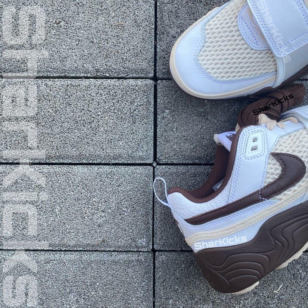 Eerder verschenen al de eerste beelden van een lichtblauwe colorway van de Zoom Field Jaxx, die destijds nog de naam Sharkidon gebruikte. De ‘Light Chocolate’ colorway heeft een gebroken witte upper, gemaakt van grof mesh. Over het silhouet heen zijn bruine en witte overlays geplaatst.