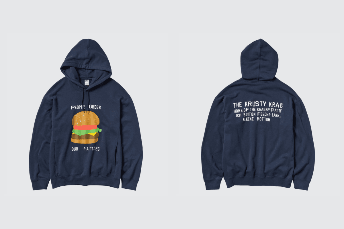 De graphics in de collectie benadrukken enkele iconische momenten en scènes uit de serie. Op een tee is de ‘I NEED IT’ quote gedrukt, die verwijst naar de aflevering waarin SpongeBob uitgedroogd raakt in Sandy’s Treedome. Op een ander shirt staat de virale Mr. Krabs meme waarin hij gepaniekeerd om zich heen kijkt.
