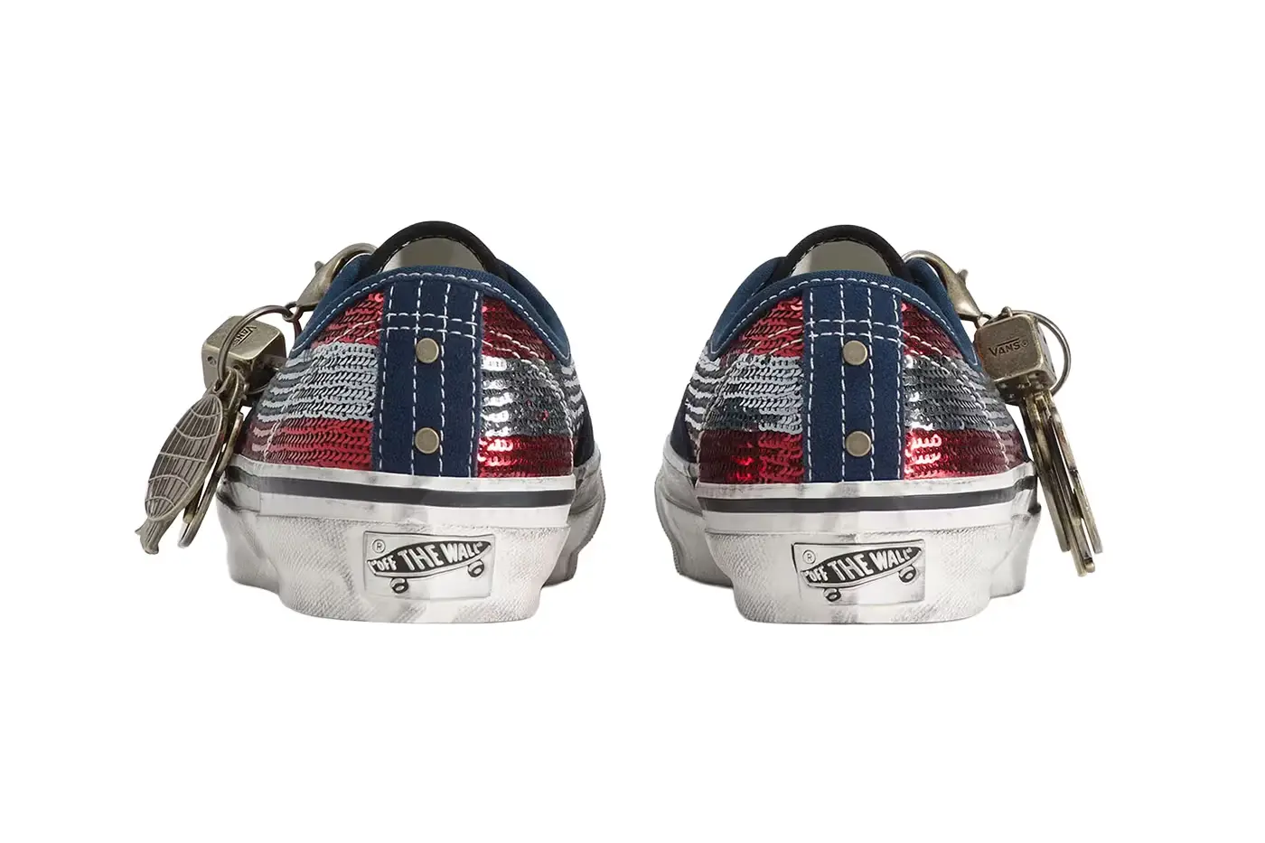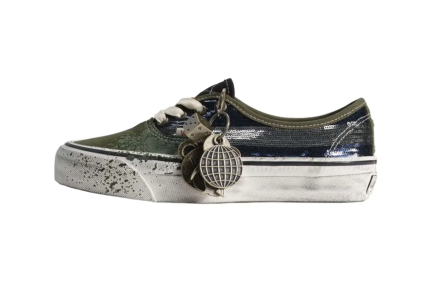 De sneakers zijn voorzien van gestreepte pailletten langs de zijkanten, een canvas upper en speelse details zoals paint splatters op de toe box en een pre-distressed midsole. Met name dat laatste zien we de laatste tijd steeds vaker terug bij Vans, vooral binnen hun Premium-lijn (hoe ironisch dat stiekem ook is).