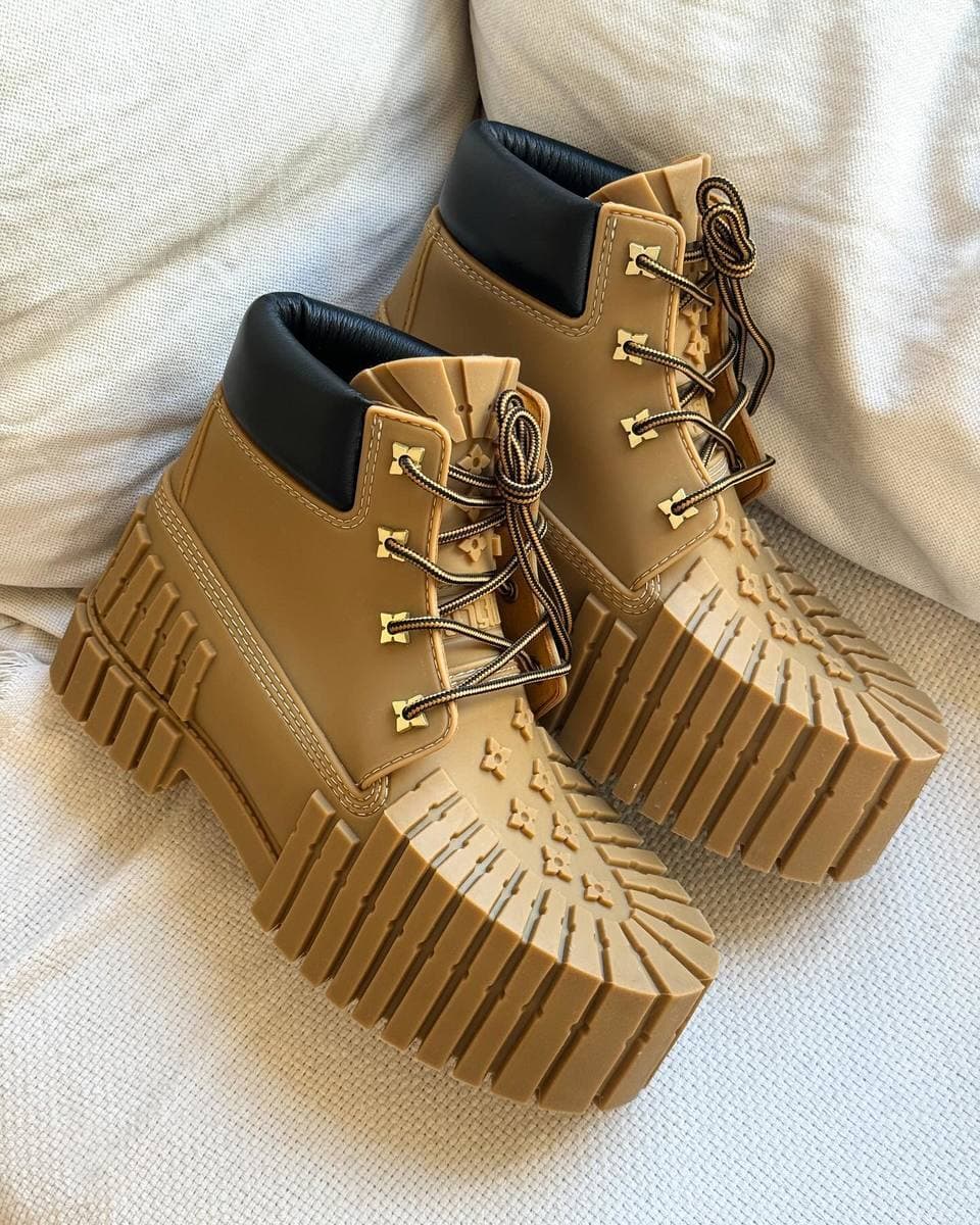 Nu zien we een volgend design van het collectief; de MSCHF 2×4 Boot. Ondanks dat de schoen nergens het merk Timberland noemt, zijn de overeenkomsten met de welbekende 6-Inch Boot niet te ontkennen. Kort na de samenwerking met Louis Vuitton en Veneda Carter, lijkt nu ook MSCHF de Timberland boot te omarmen met een reversed design.