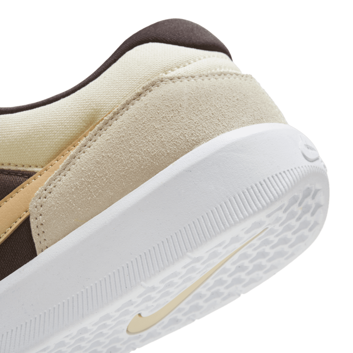 De SB Force 58 heeft een kleurenschema gekregen dat identiek is aan dat van de ‘Reverse Mocha’. Het bovenwerk is opgebouwd uit bruin suède en canvas, met crèmekleurige suède overlays. Bovendien zijn zowel de kraag als de tong voorzien van een combinatie van crèmekleurig canvas en bruin suède.