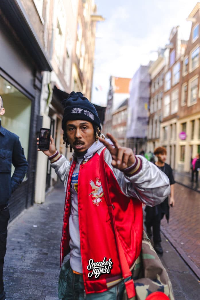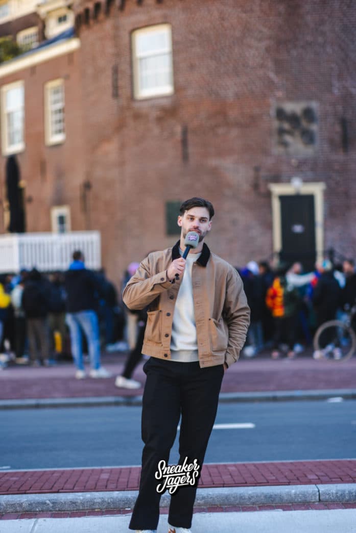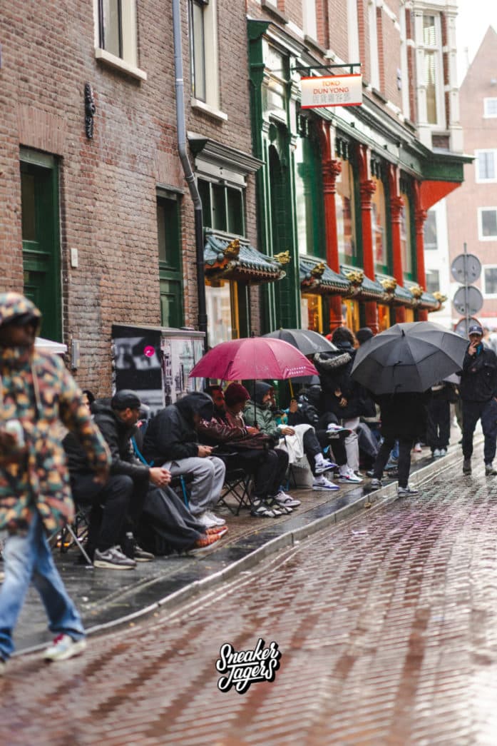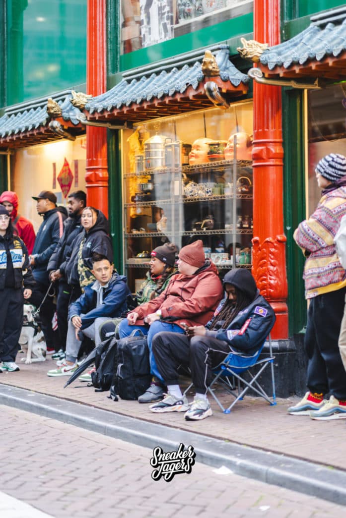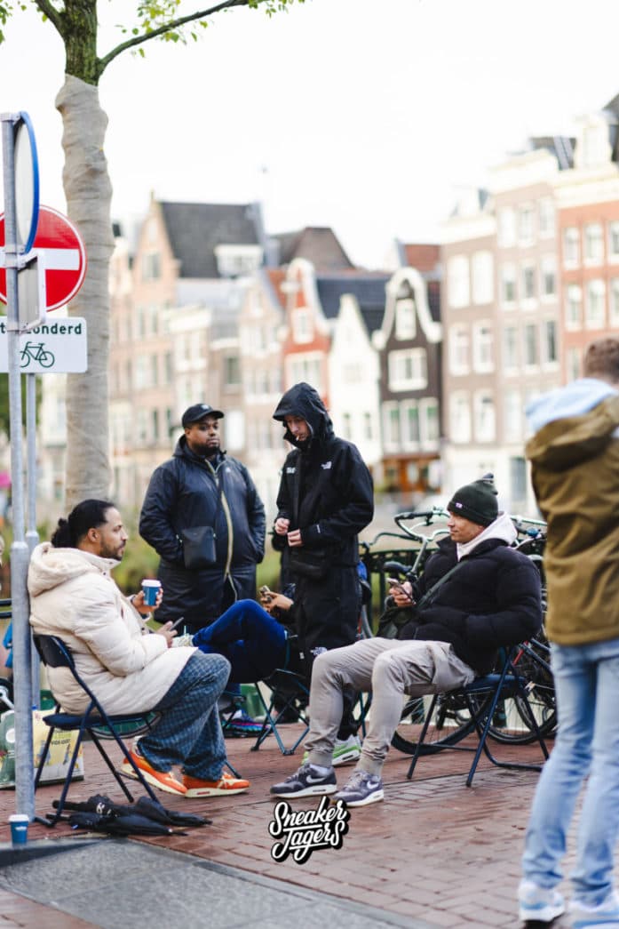 Sneakerjagers was ook aanwezig op de Zeedijk en sprak met mensen in de rij. Met kleine, slaperige ogen vertelden de voorsten in de rij dat ze al sinds woensdagmiddag aanwezig waren, zo’n 48 uur voor de release. Met campingstoelen, slaapzakken en de nodige blikjes Red Bull hielden ze zichzelf wakker in afwachting van de uiteindelijke drop van de sneaker.