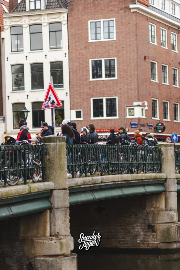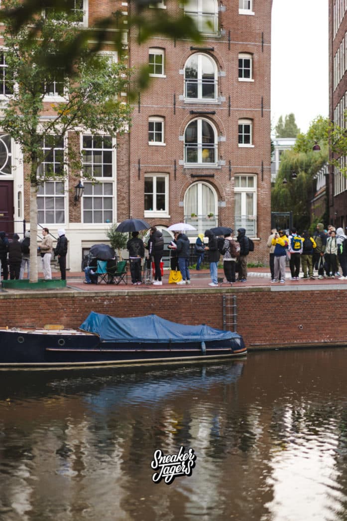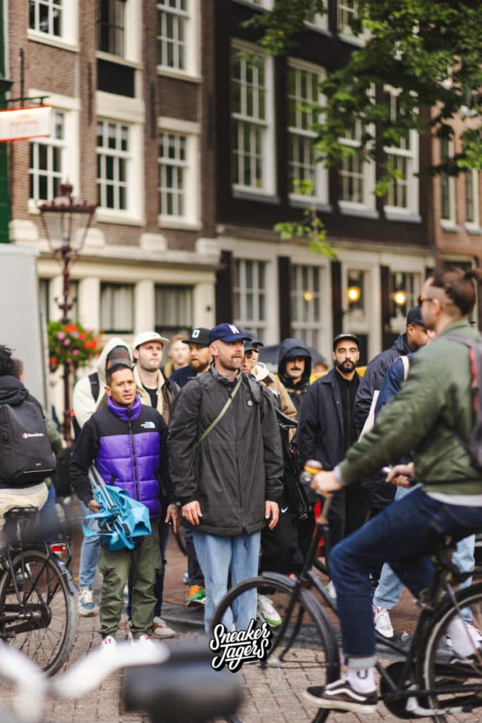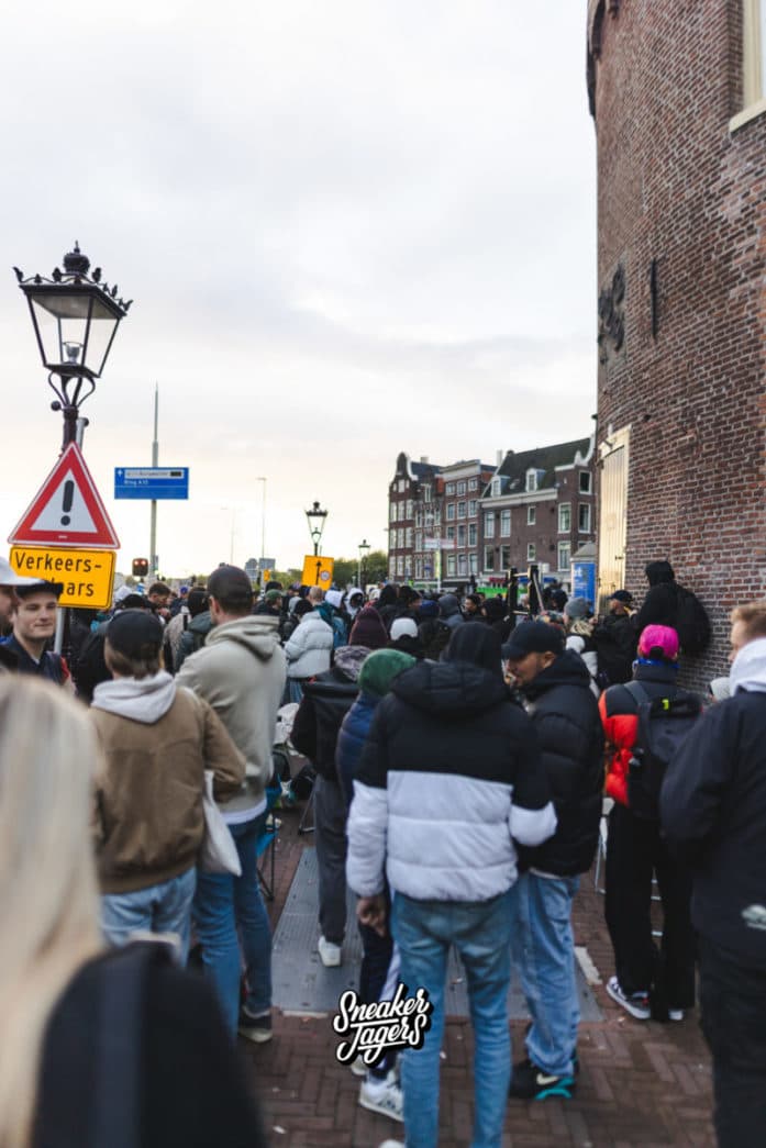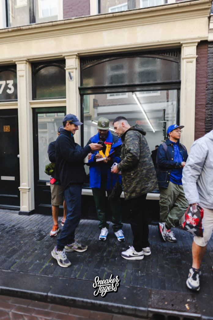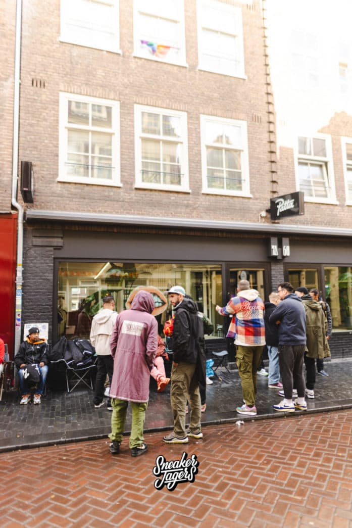 Rond zeven uur ’s ochtends arriveerde het team van Sneakerjagers bij de Zeedijk, de locatie van de Amsterdamse winkel. In de straten rondom de Patta flagshipstore waren de eerste aanwezigen al te zien, herkenbaar aan hun sneakers. Diverse colorways van de Patta x Nike ‘The Wave’ kwamen voorbij, evenals de Patta x Nike Air Max 90 ‘Homegrown’ en andere releases van het duo.